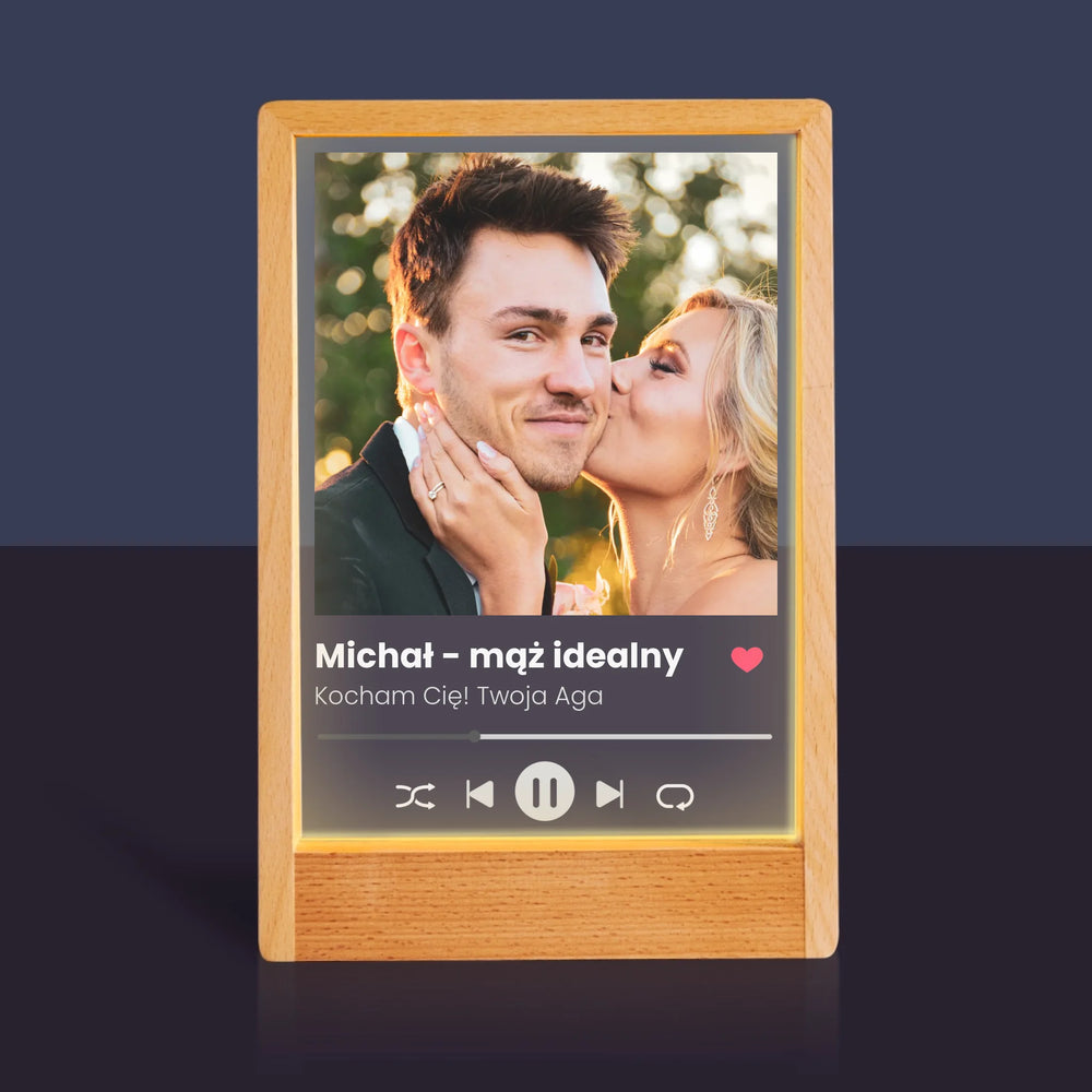 Zdjęcie I Podpis: Spotify Dla Męża - Wydruk na szkle akrylowym w ramce LED