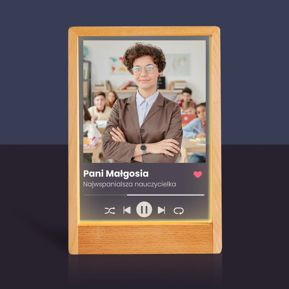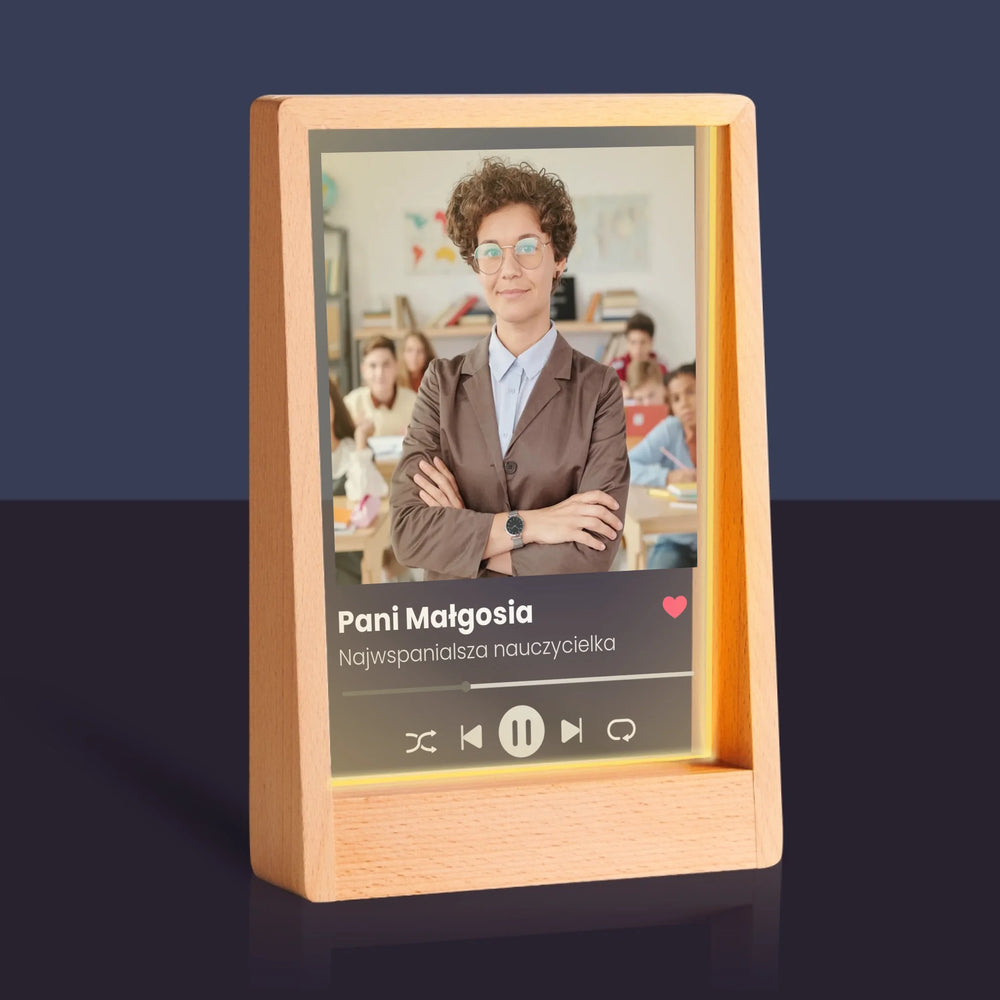 Zdjęcie I Podpis: Spotify Dla Nauczyciela - Wydruk na szkle akrylowym w ramce LED