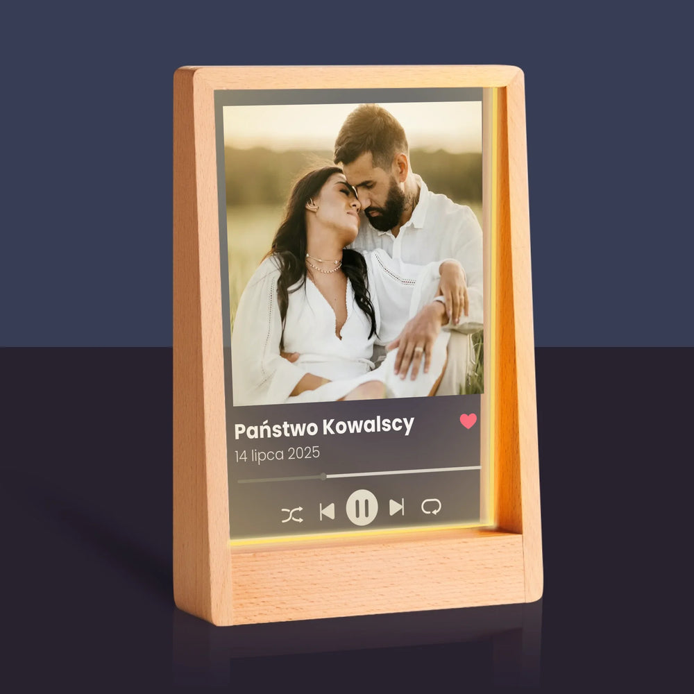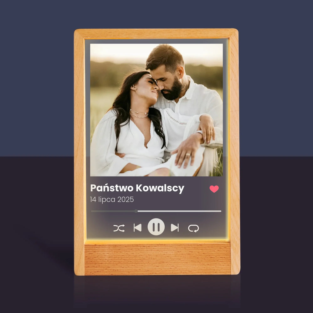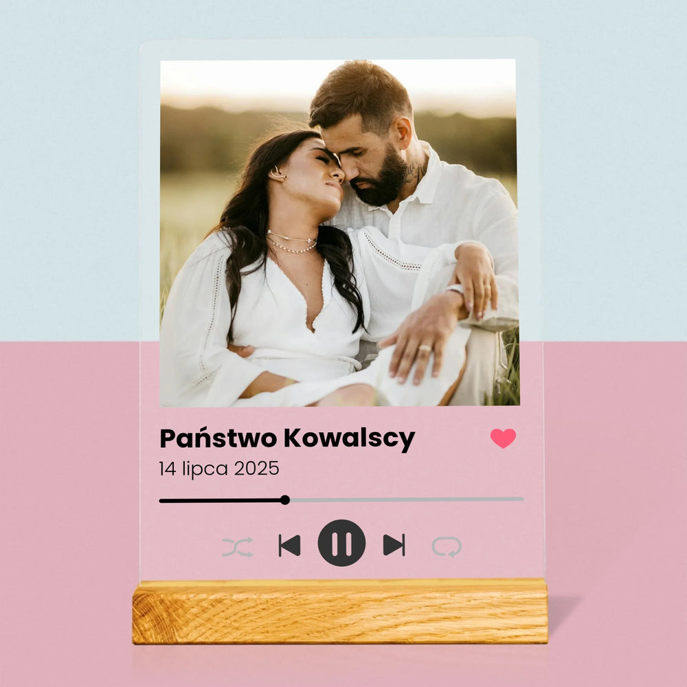 Zdjęcie I Podpis: Spotify Dla Pary Młodej - Wydruk na szkle akrylowym w ramce LED