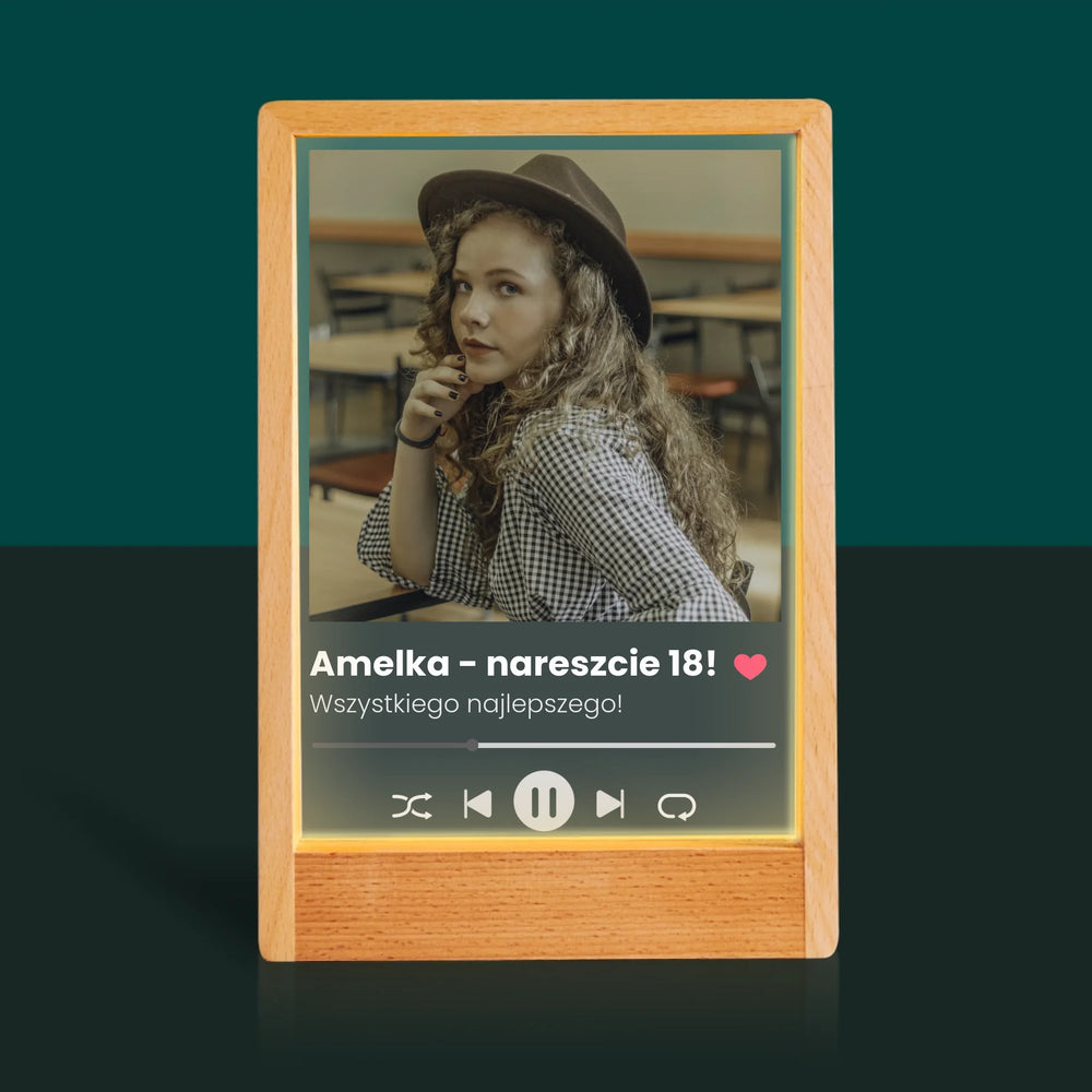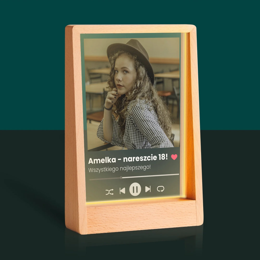 Zdjęcie I Podpis: Spotify Na 18 Urodziny - Wydruk na szkle akrylowym w ramce LED