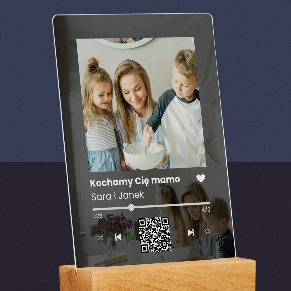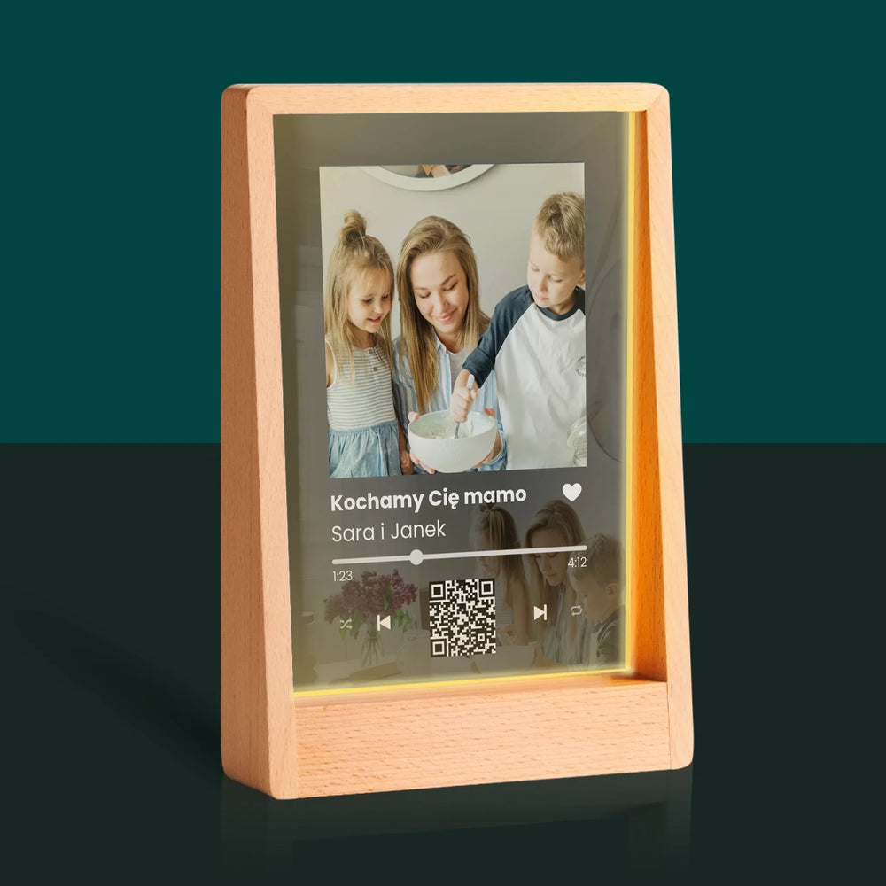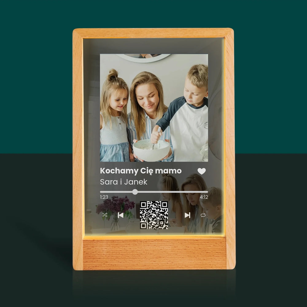 Zdjęcie I Podpis: Spotify Z Kodem Qr Dla Mamy - Wydruk na szkle akrylowym w ramce LED