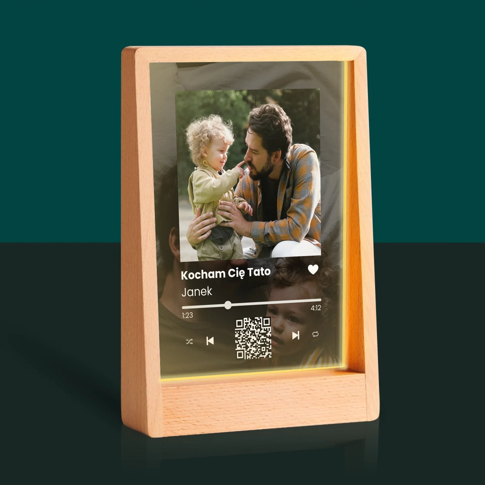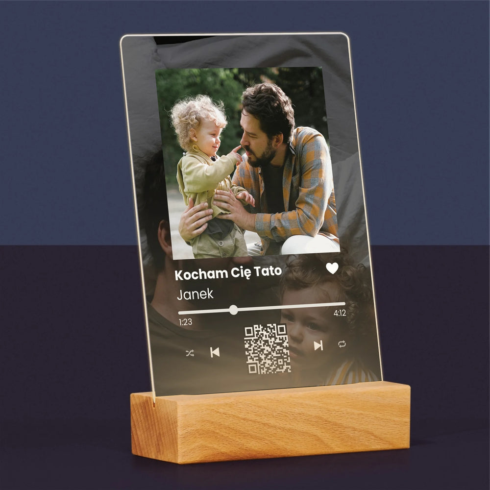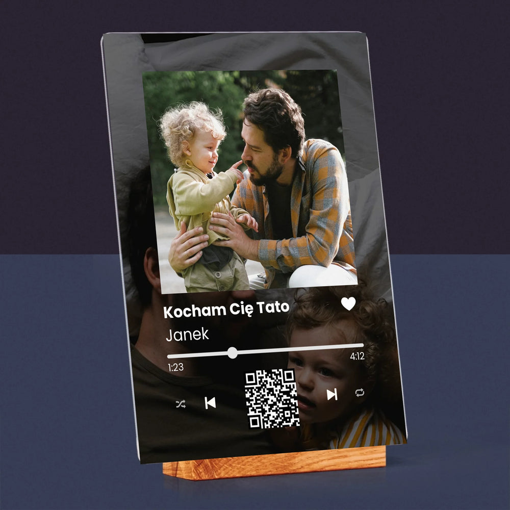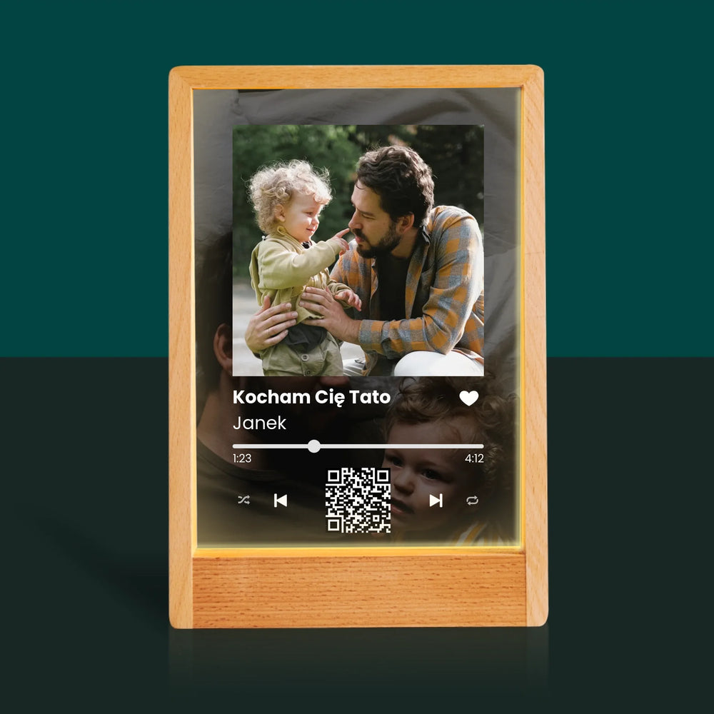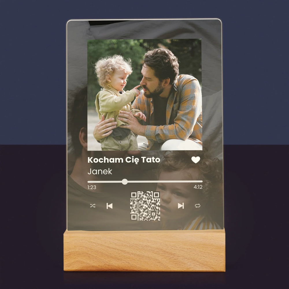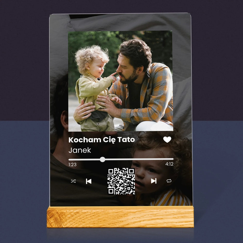 Zdjęcie I Podpis: Spotify Z Kodem Qr Dla Taty - Wydruk na szkle akrylowym w ramce LED