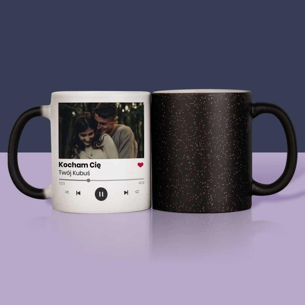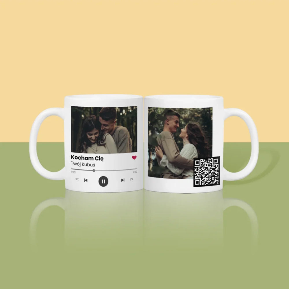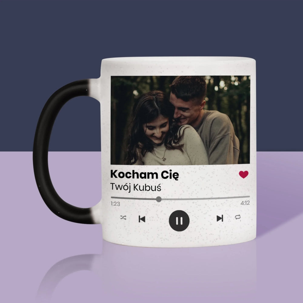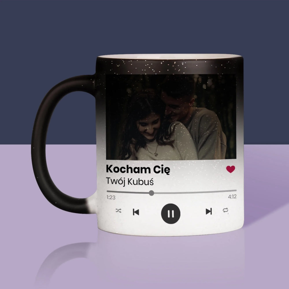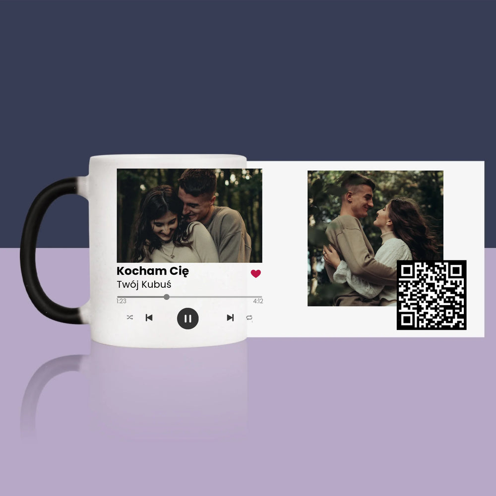 Zdjęcie i Podpis: Spotify z Kodem Qr - Magiczny kubek z brokatem