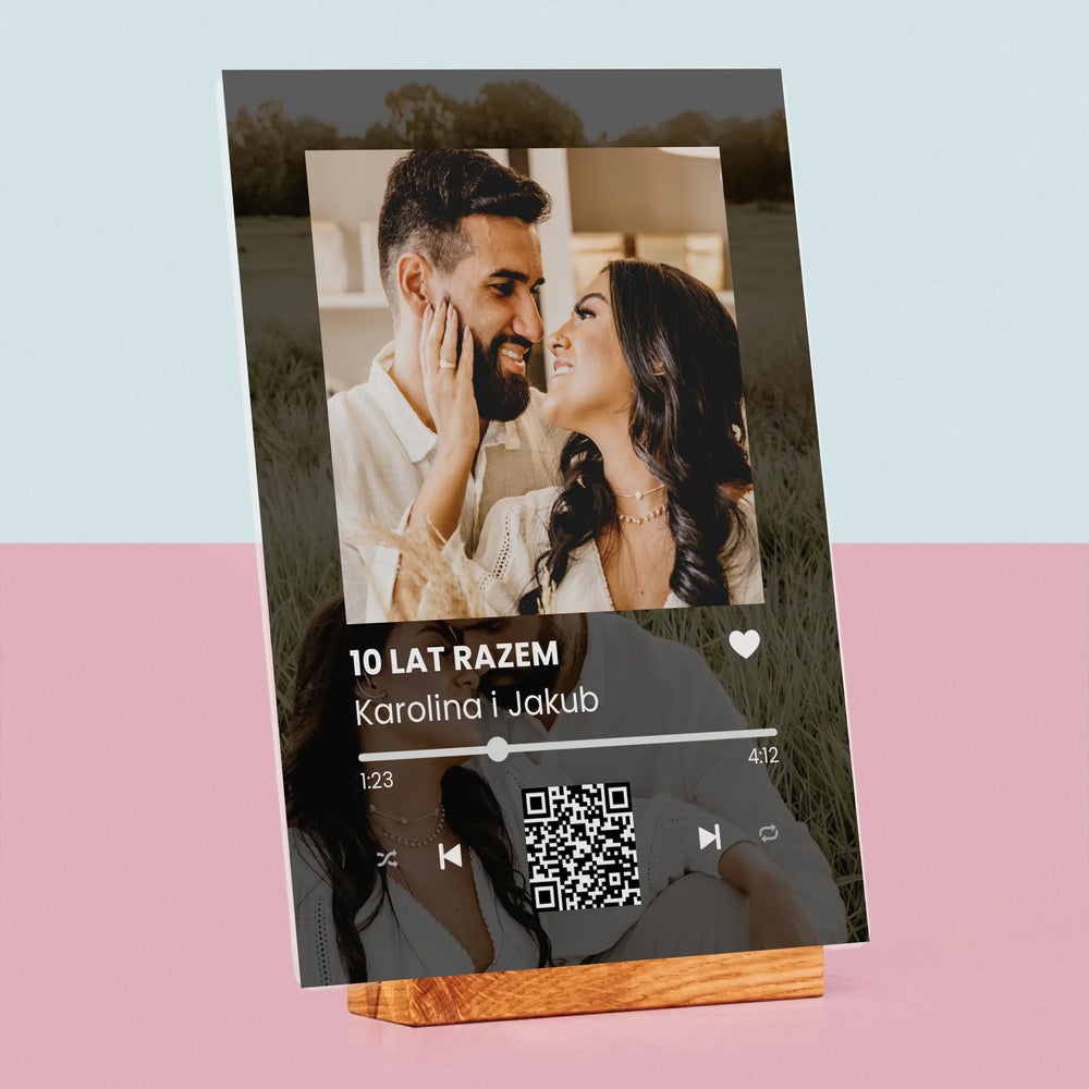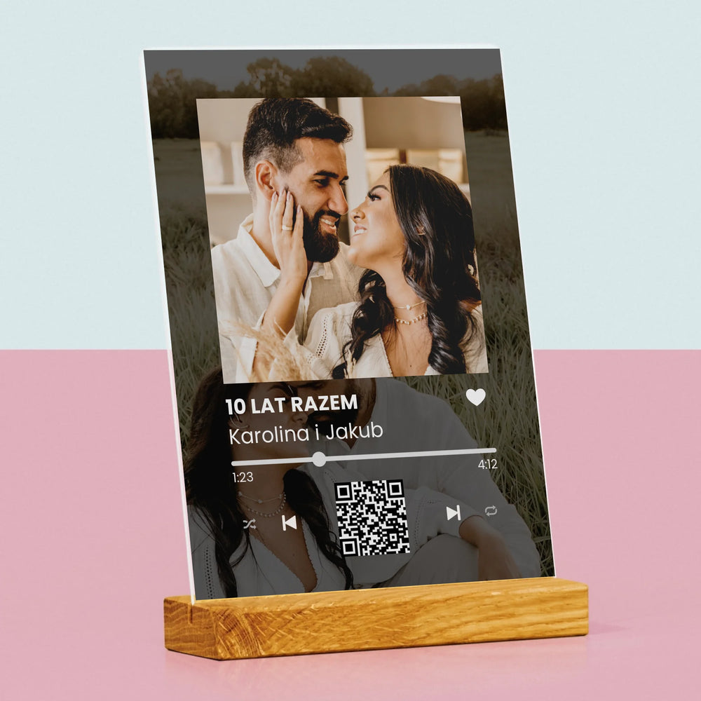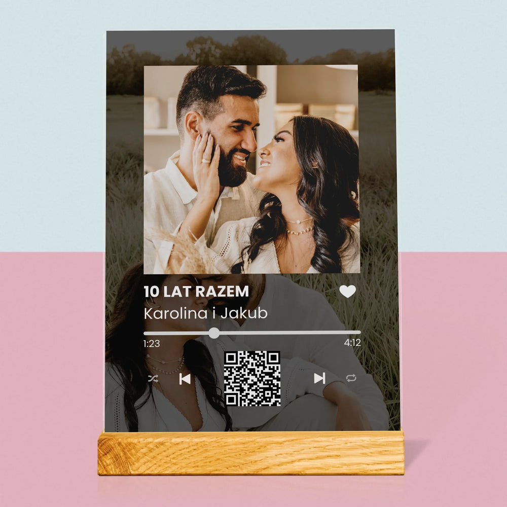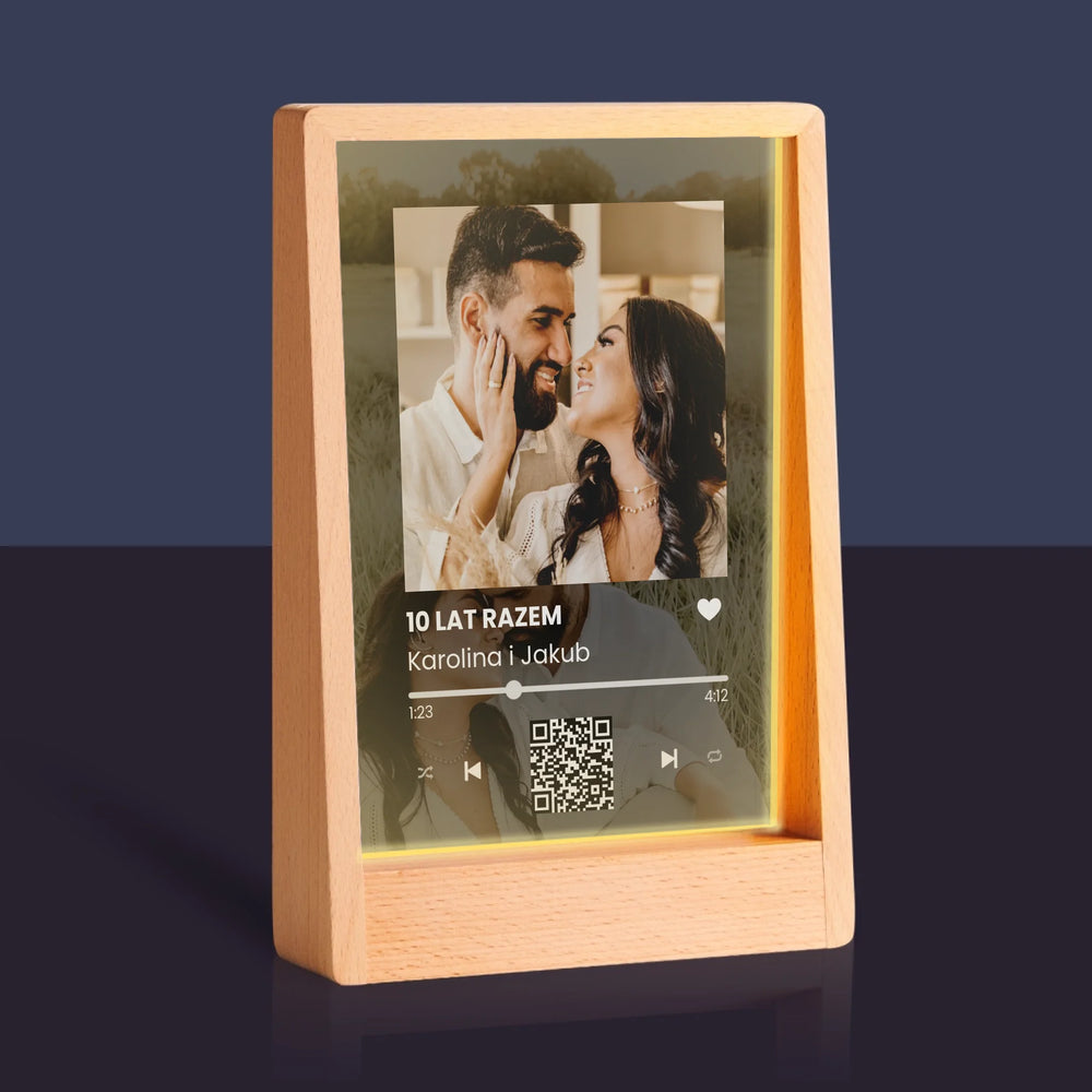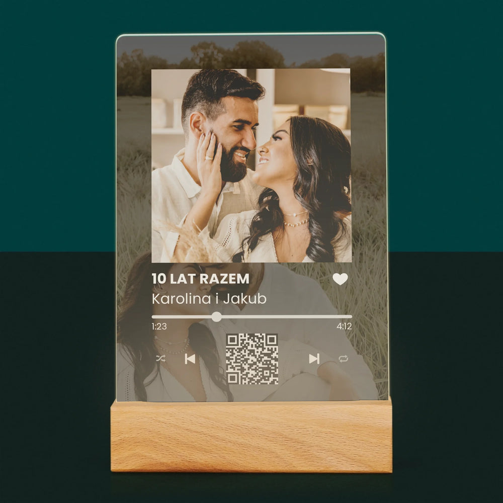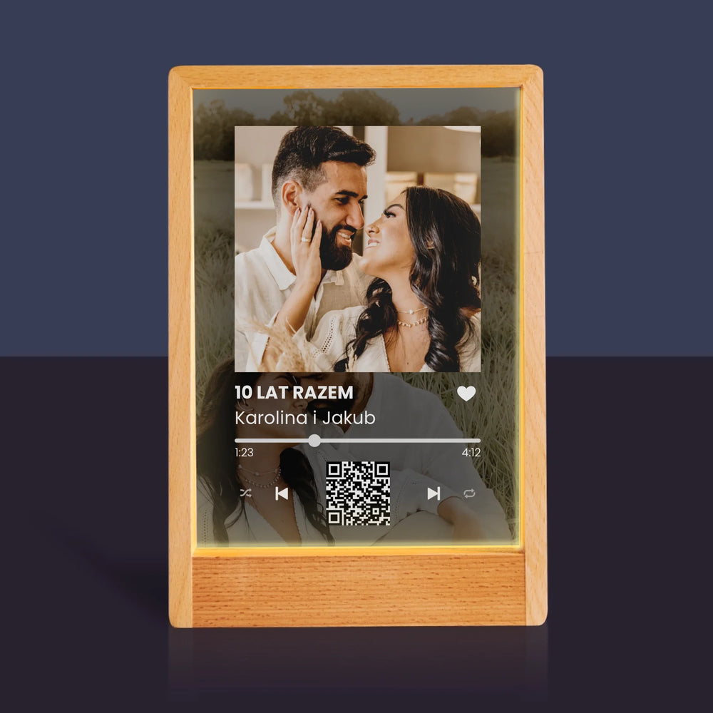 Zdjęcie I Podpis: Spotify Z Kodem Qr Na Rocznicę - Wydruk na szkle akrylowym w ramce LED