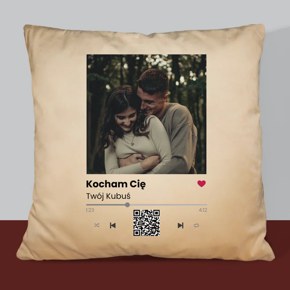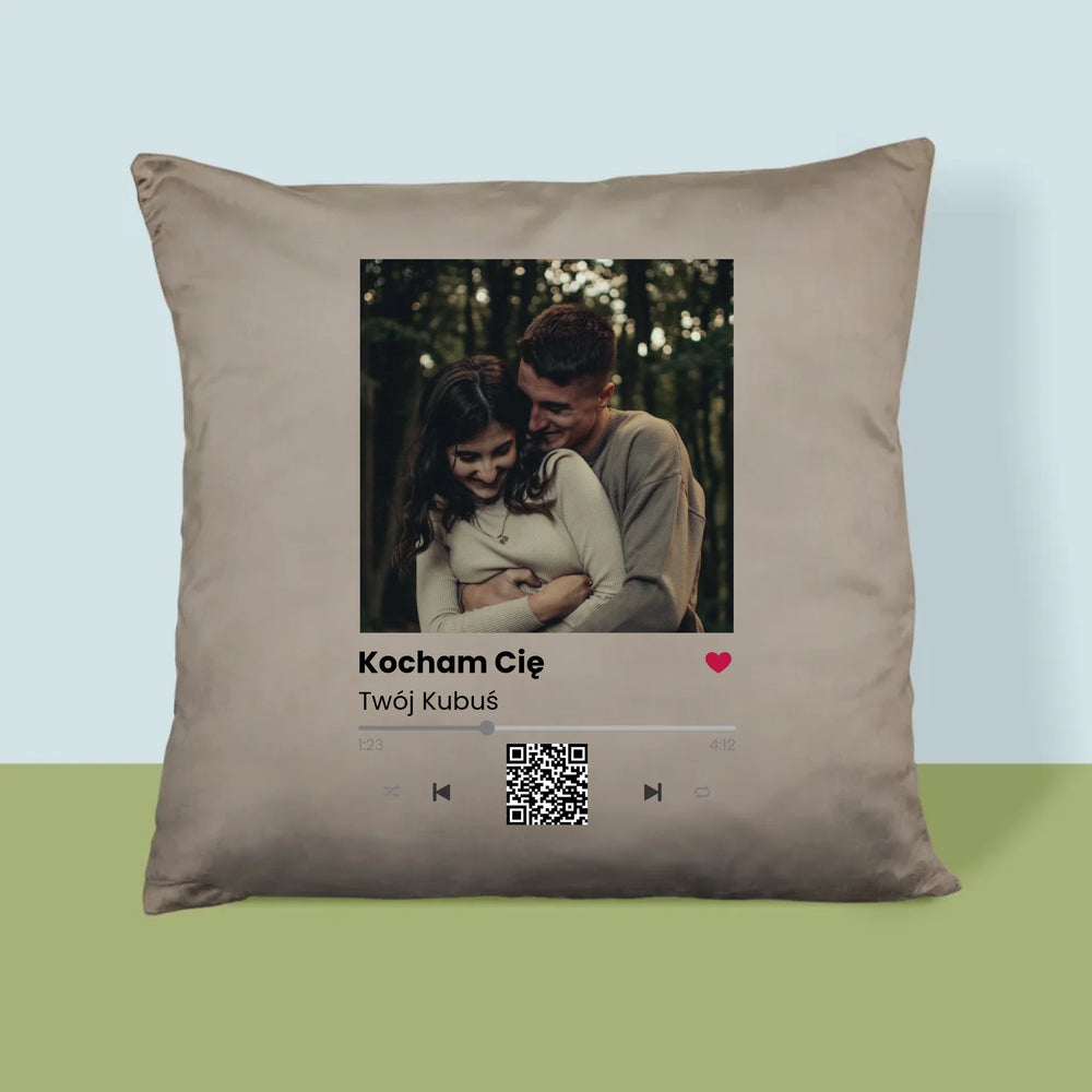 Zdjęcie i Podpis: Spotify z Kodem Qr - Poduszka z Nadrukiem