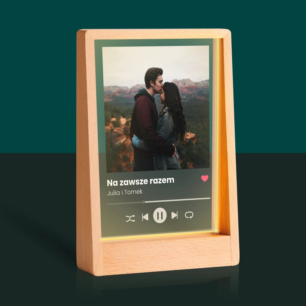Zdjęcie i Podpis: Spotify z Twoim Zdjęciem - Wydruk na szkle akrylowym w ramce LED