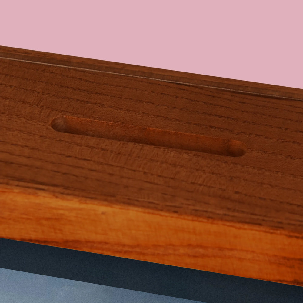 Wykonana z bejcowanego i lakierowanego drewna jesionowego.