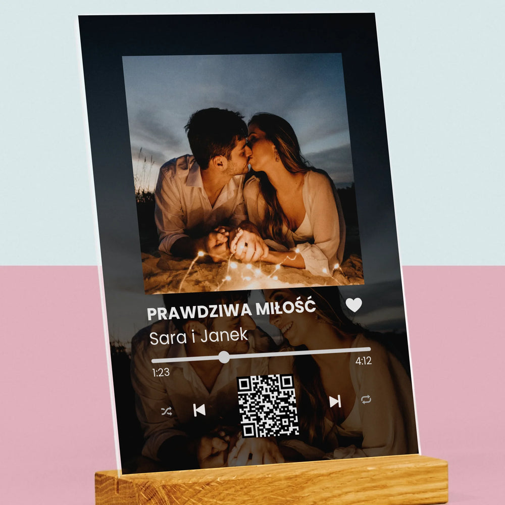Zdjęcie i Podpis: Spotify z Twoimi Zdjęciami i Kodem Qr - Wydruk na szkle akrylowym LED