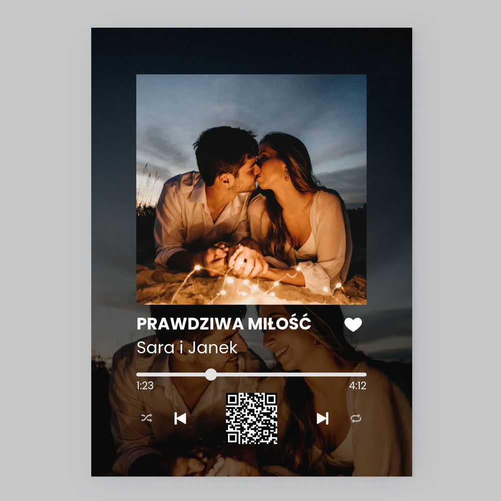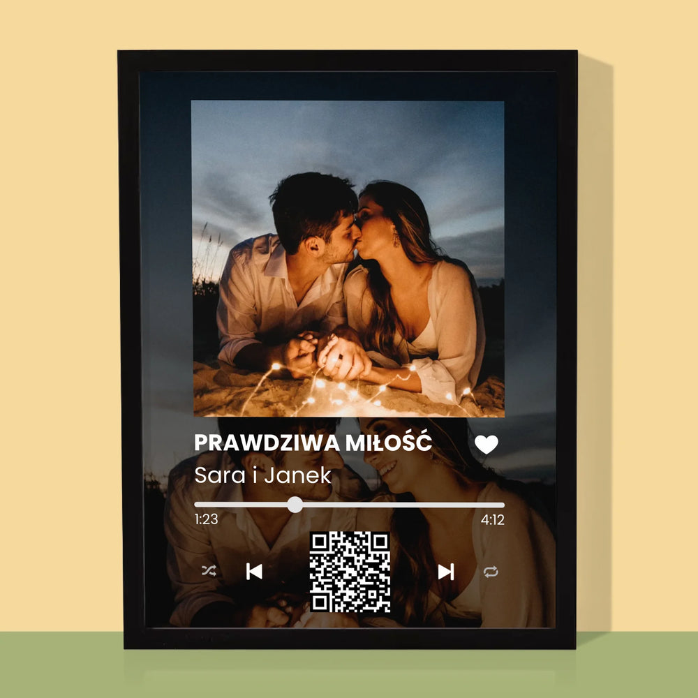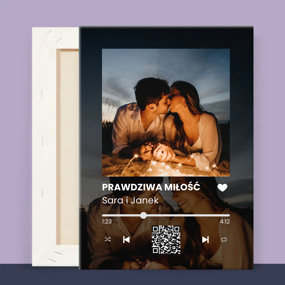 Zdjęcie i Podpis: Spotify z Twoimi Zdjęciami i Kodem Qr - Personalizowany Obraz na płótnie