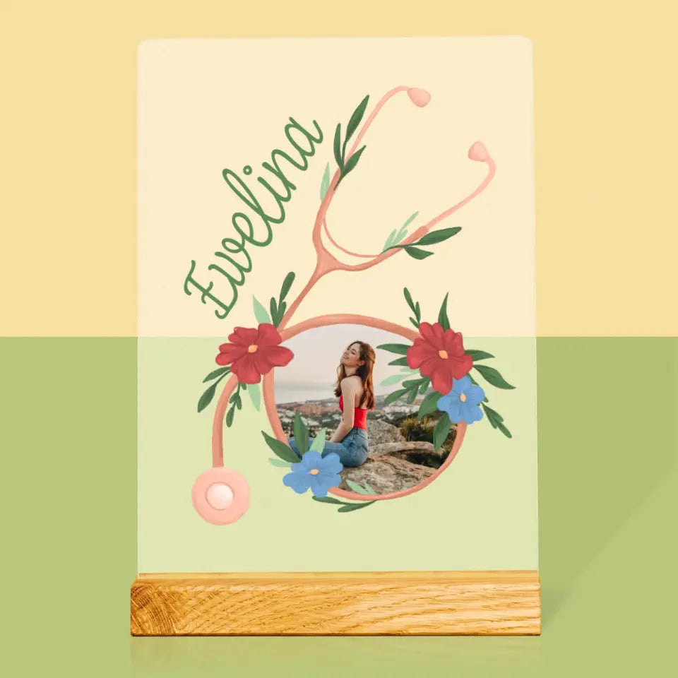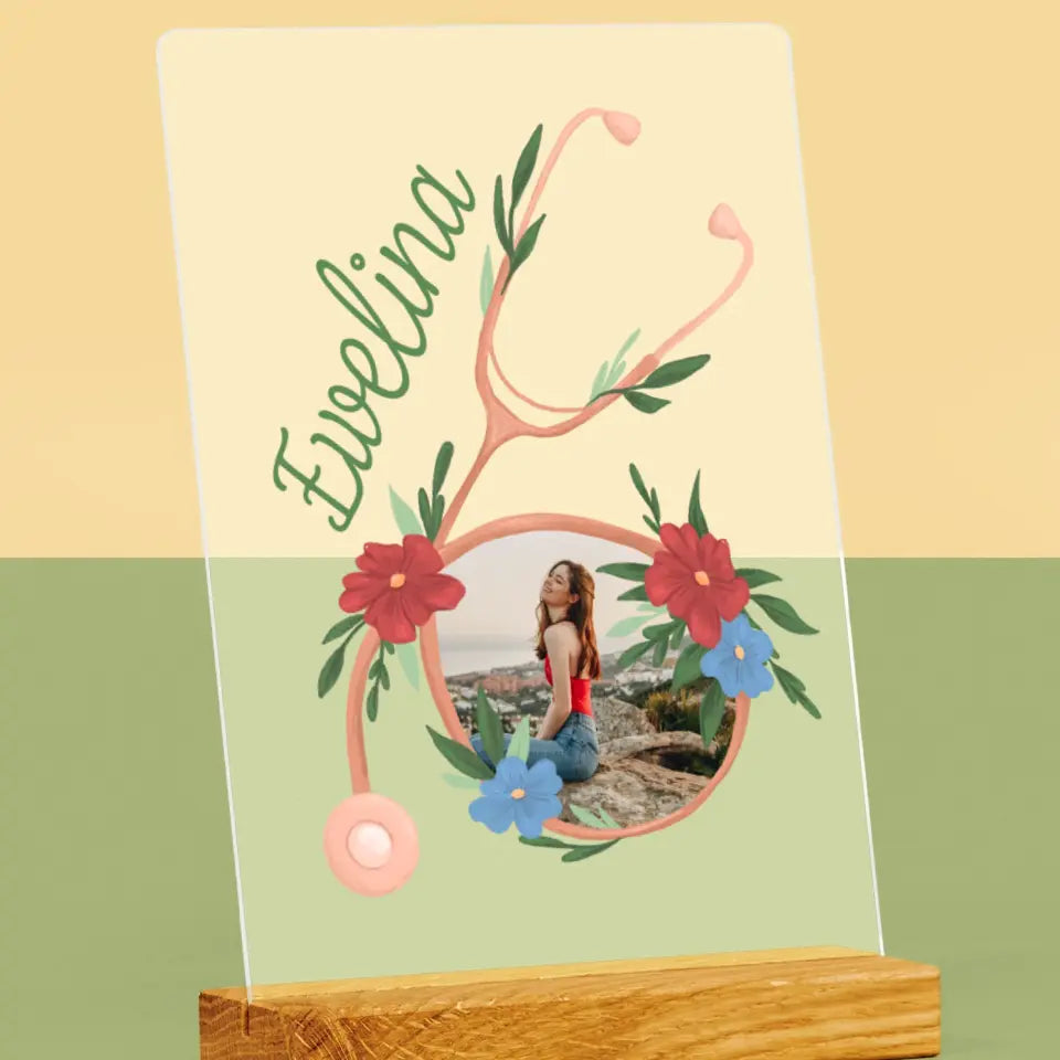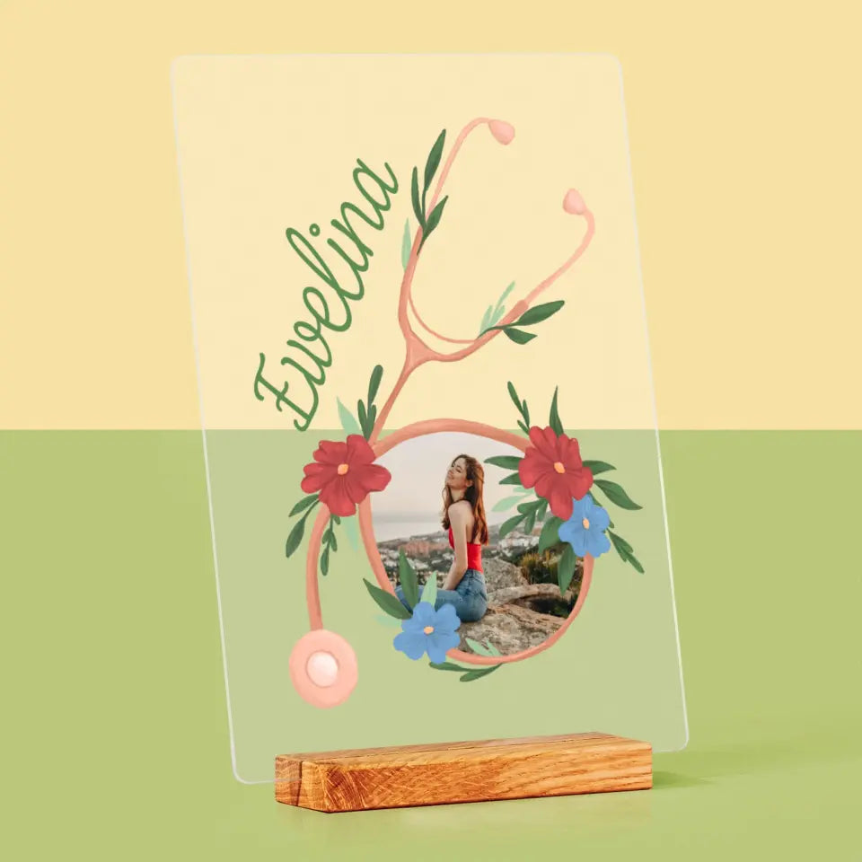 Zdjęcie i Podpis: Stetoskop Kwiaty - Wydruk Na Szkle Akrylowym