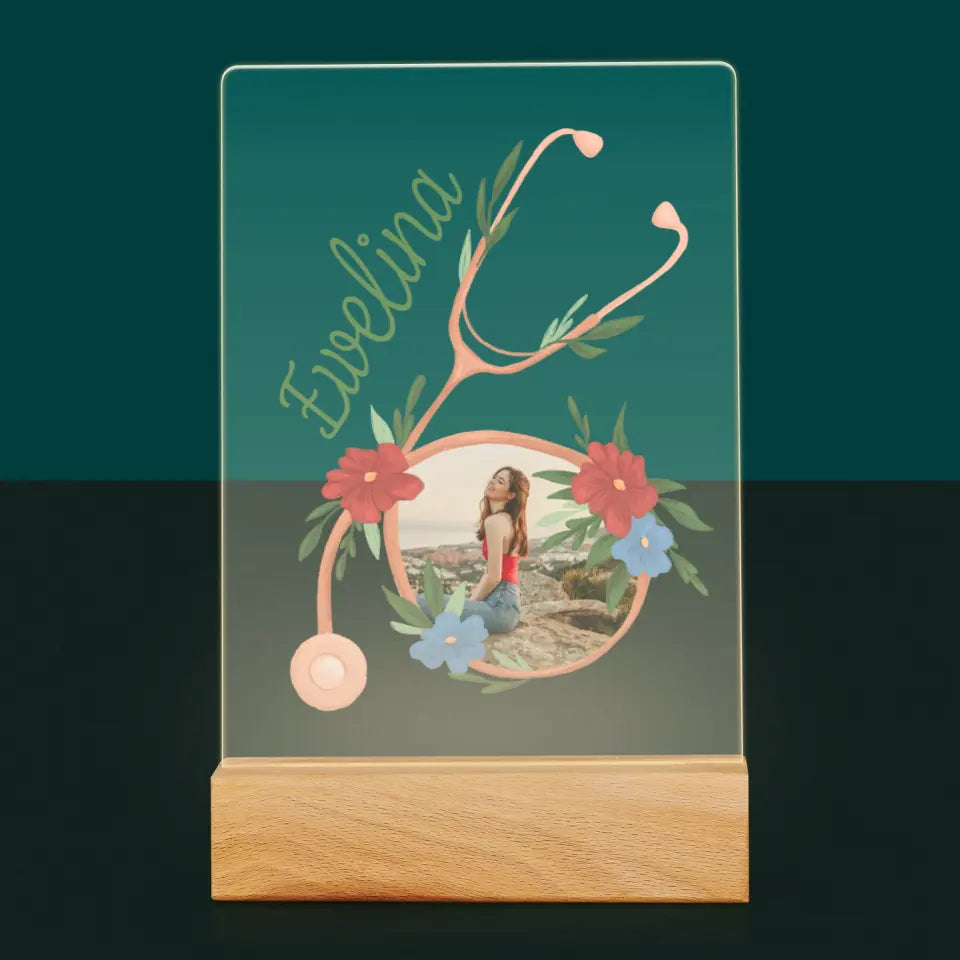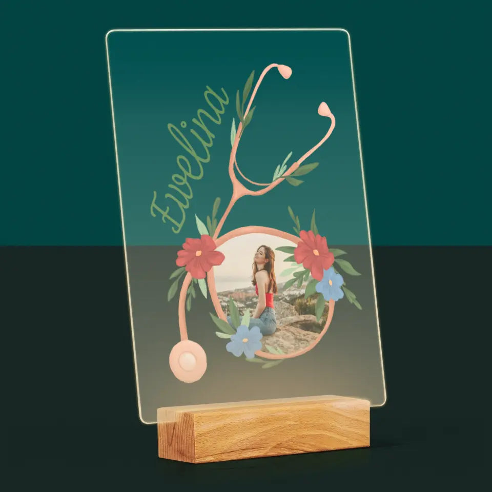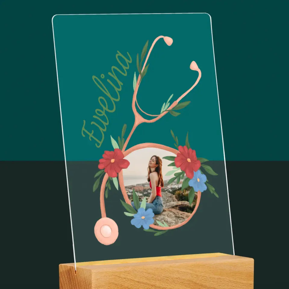 Zdjęcie i Podpis: Stetoskop Kwiaty - Wydruk na szkle akrylowym