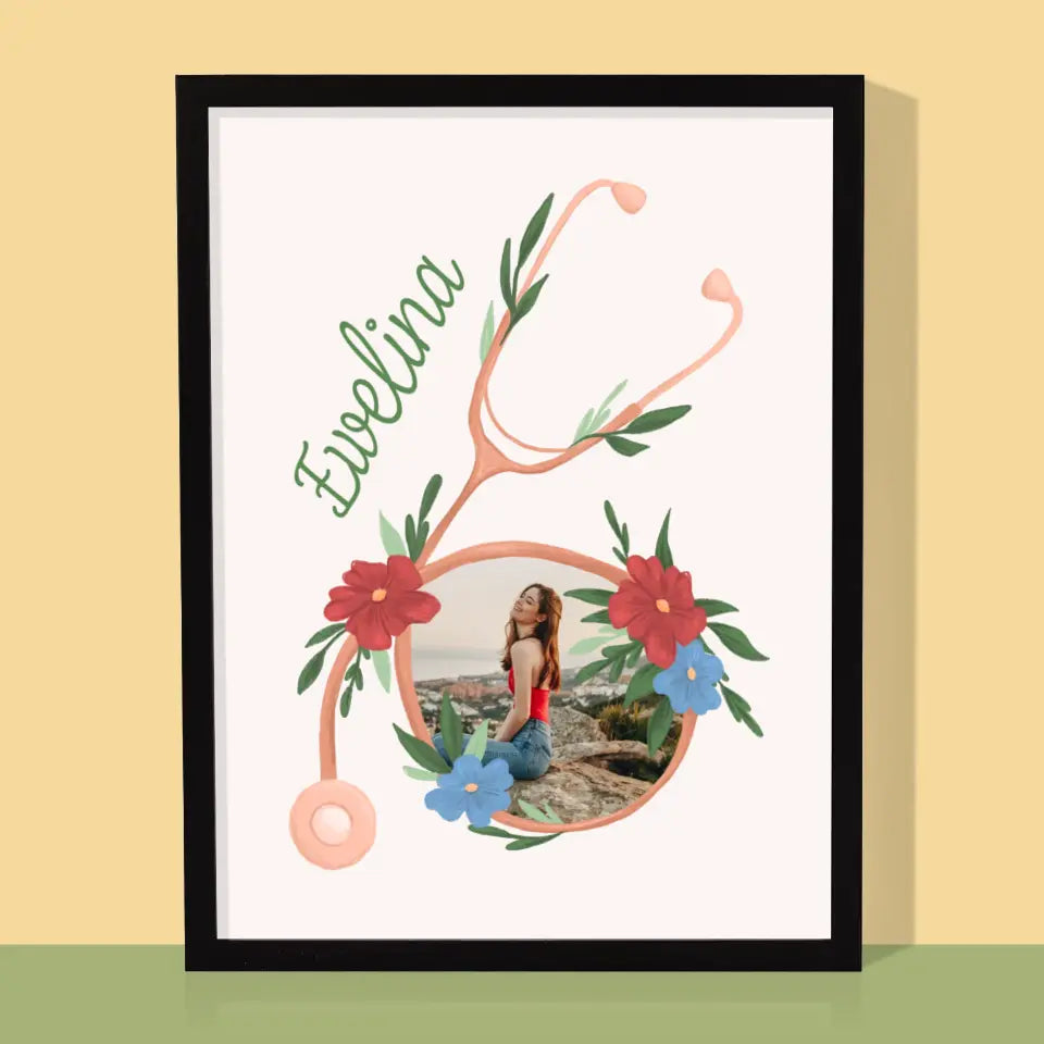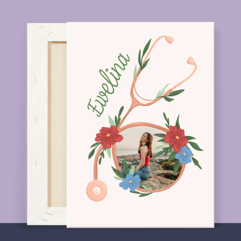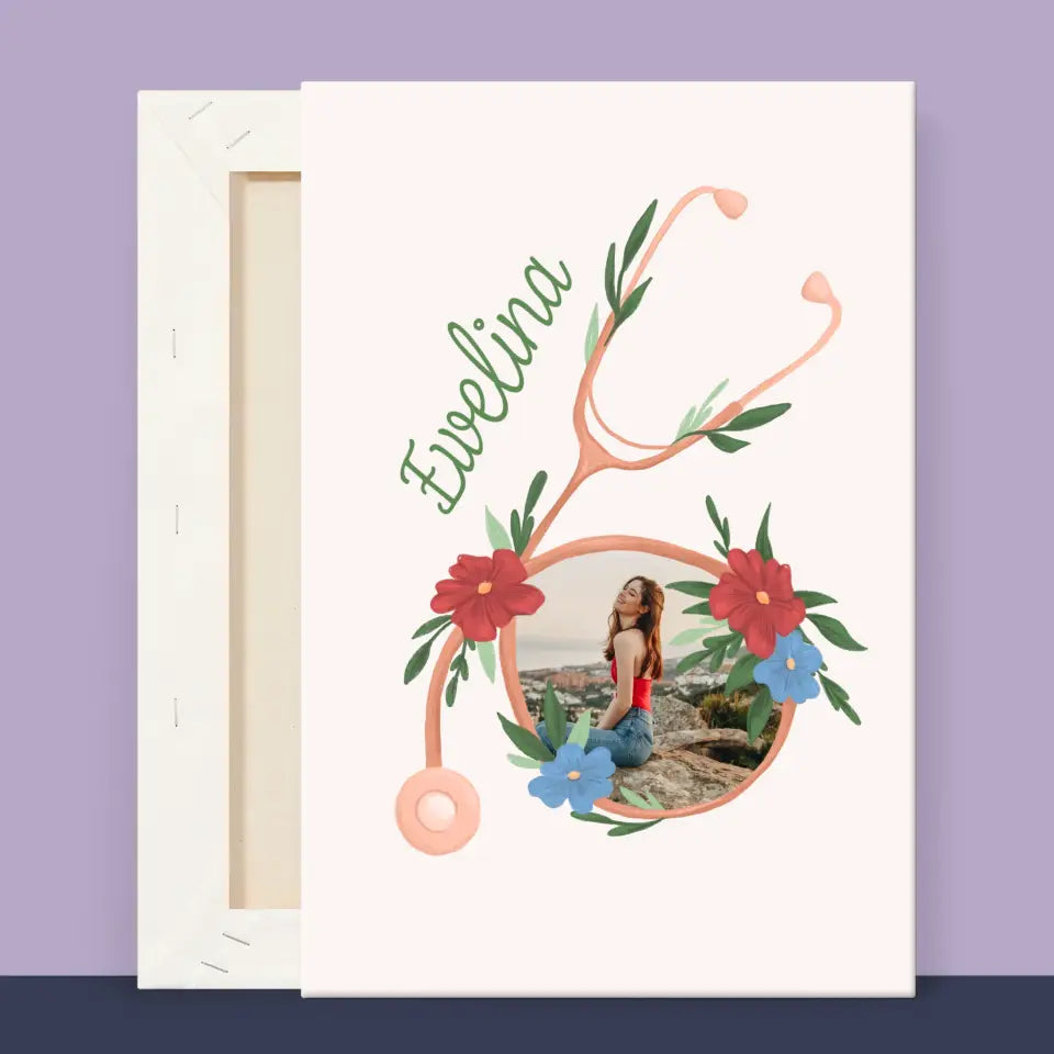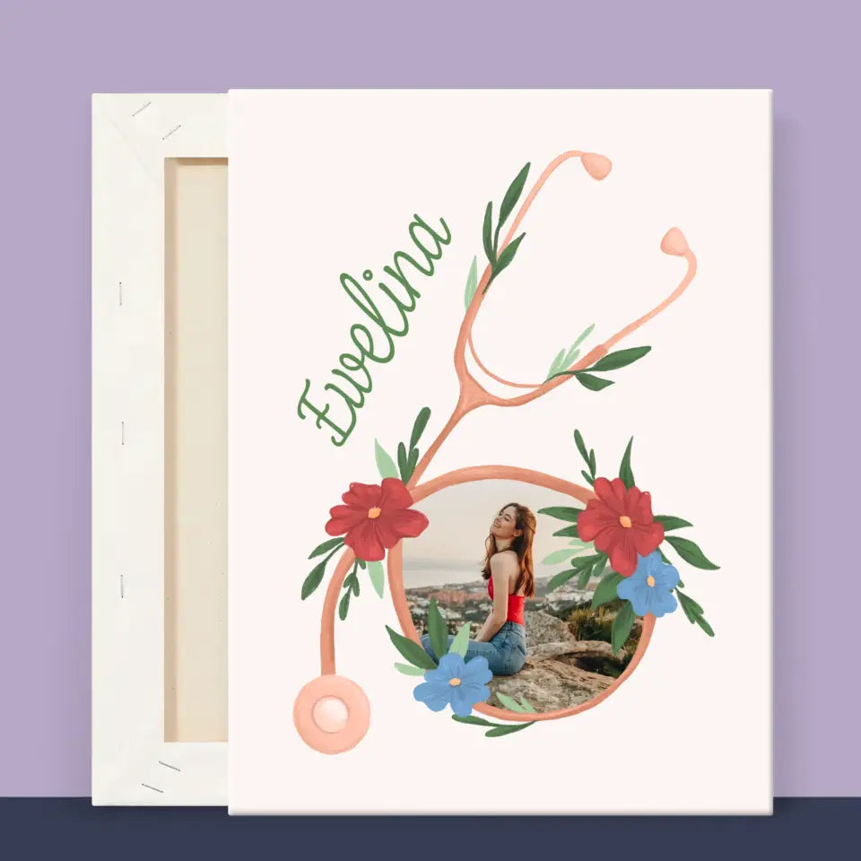 Zdjęcie i Podpis: Stetoskop Kwiaty - Personalizowany Obraz na płótnie