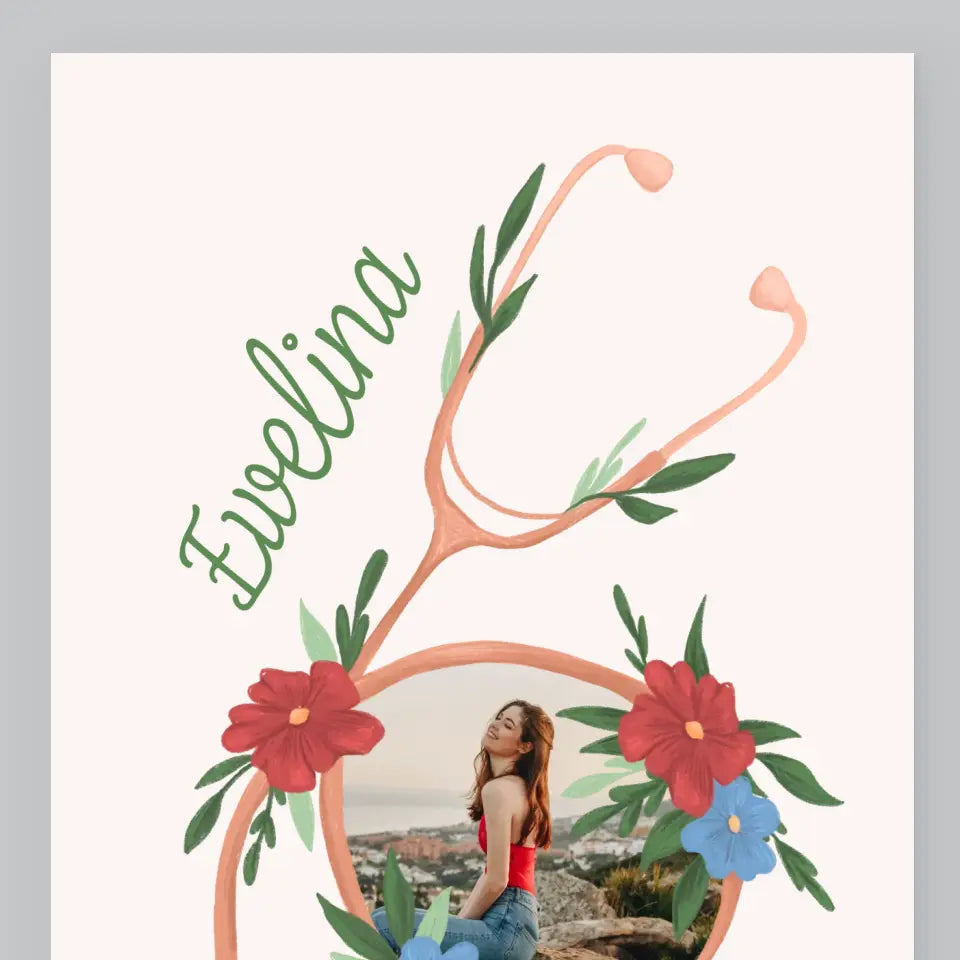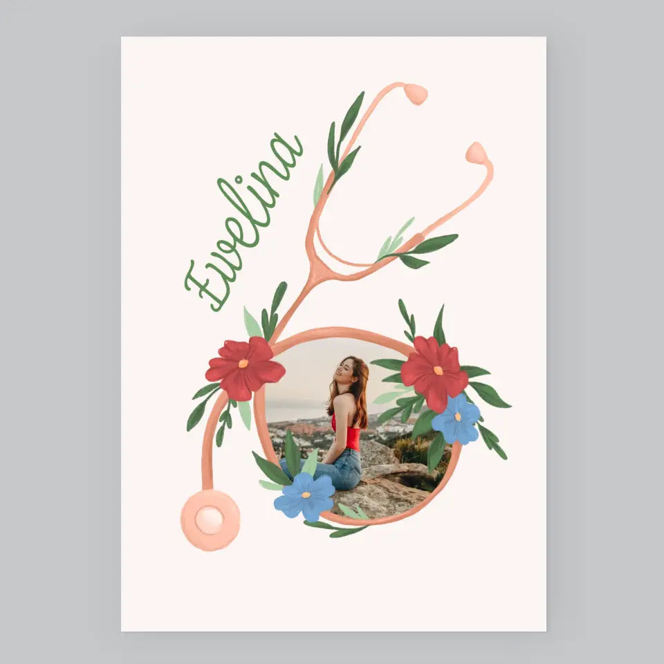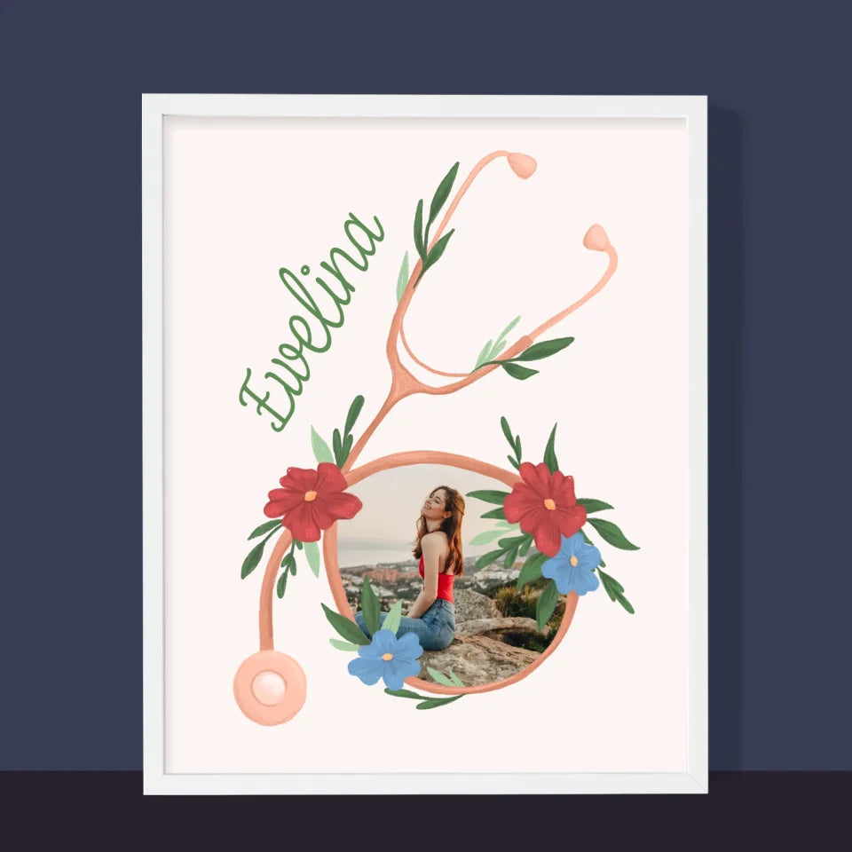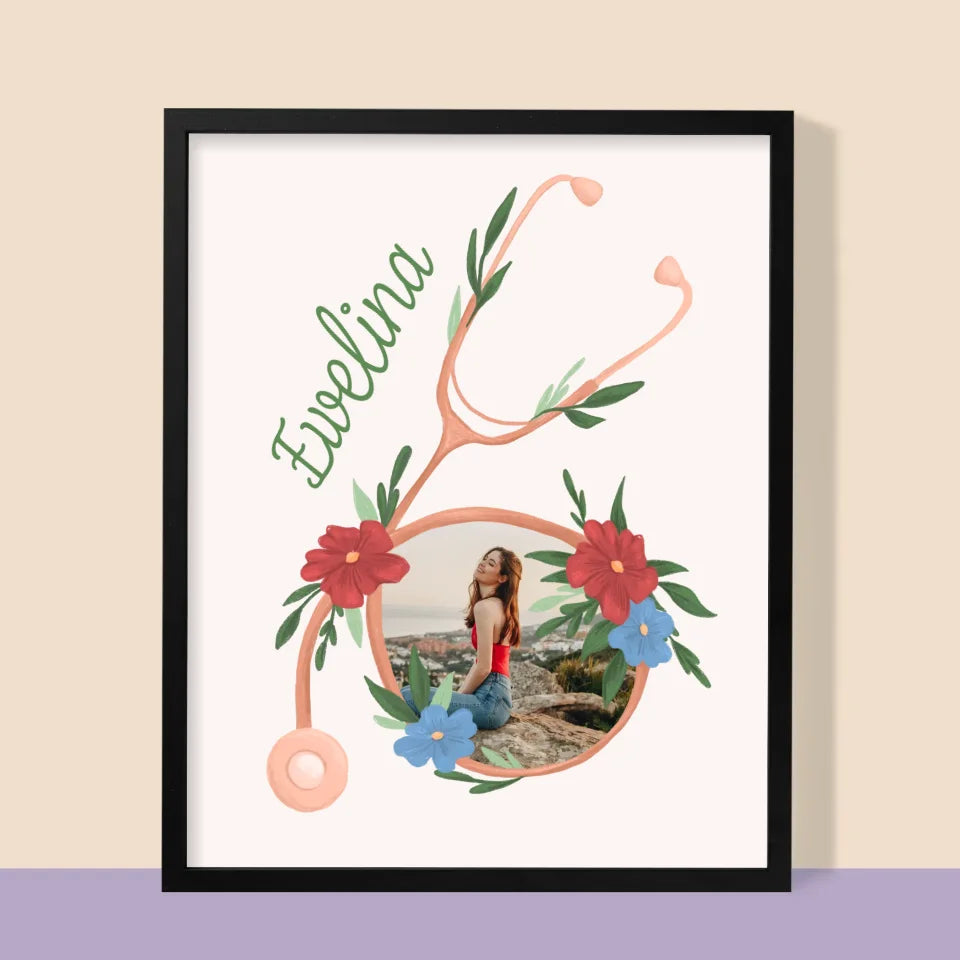 Zdjęcie i Podpis: Stetoskop Kwiaty - Personalizowany Obraz na płótnie