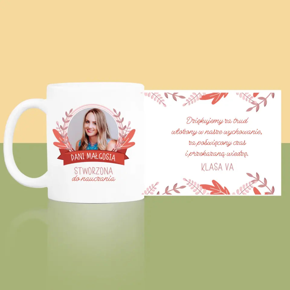 Zdjęcie i Podpis: Stworzona Do Nauczania - Kubek serce