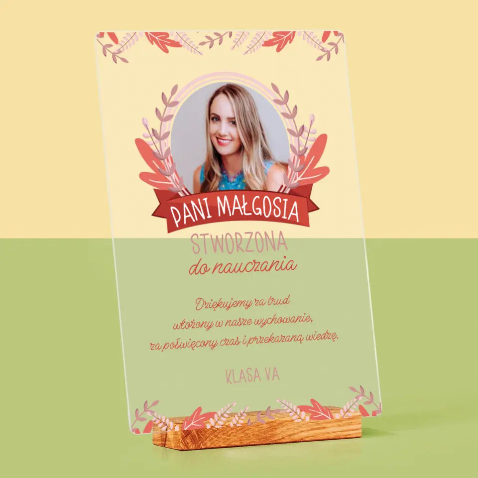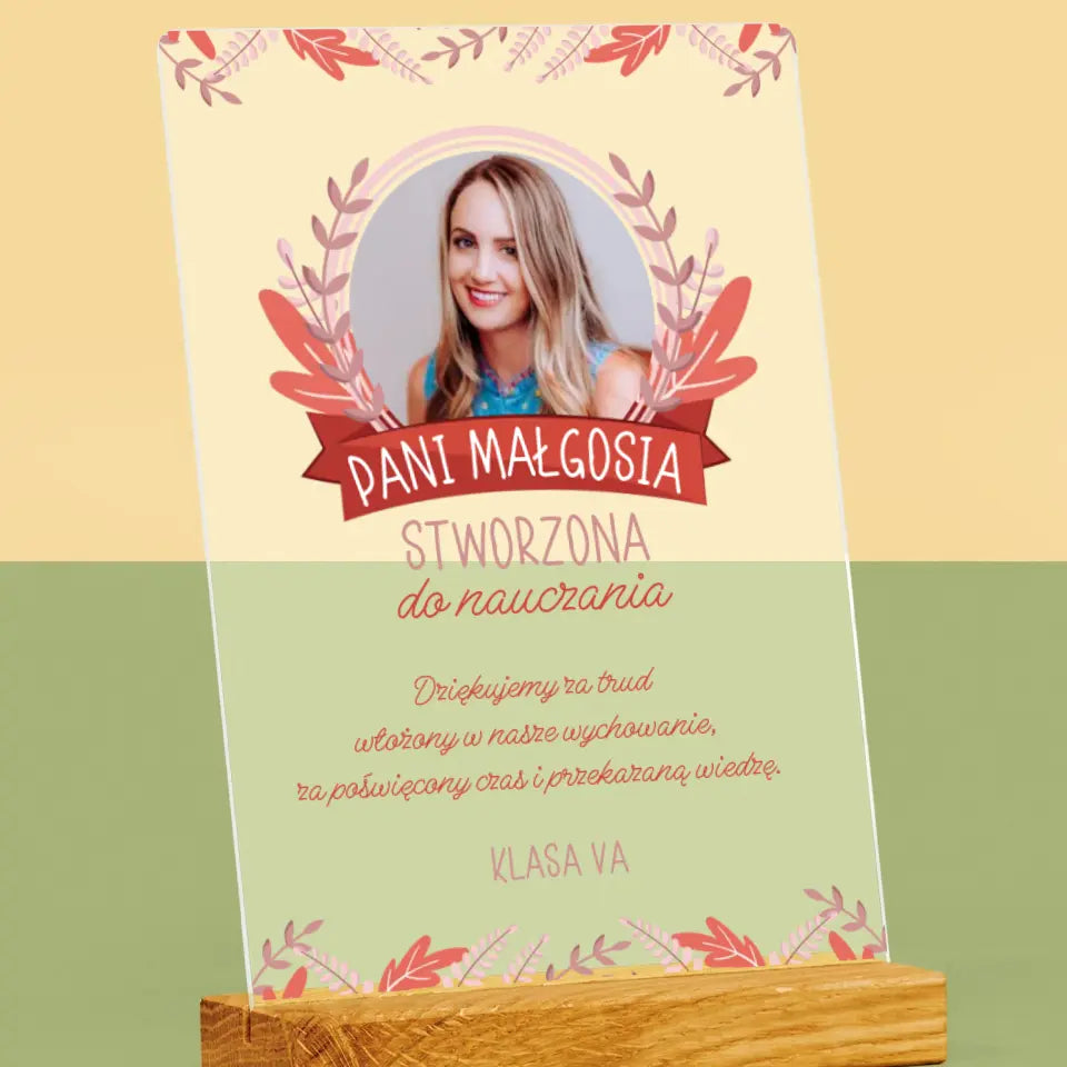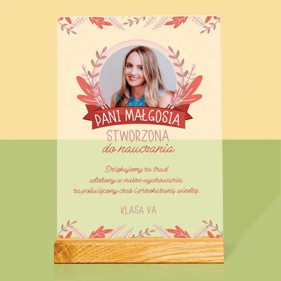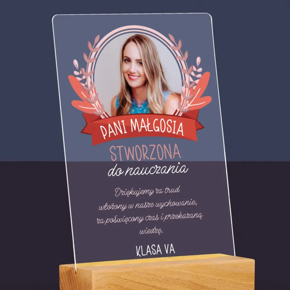 Zdjęcie I Podpis: Stworzona Do Nauczania - Wydruk na szkle akrylowym LED