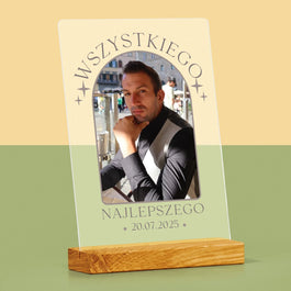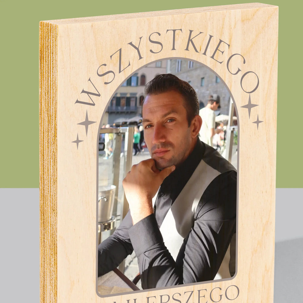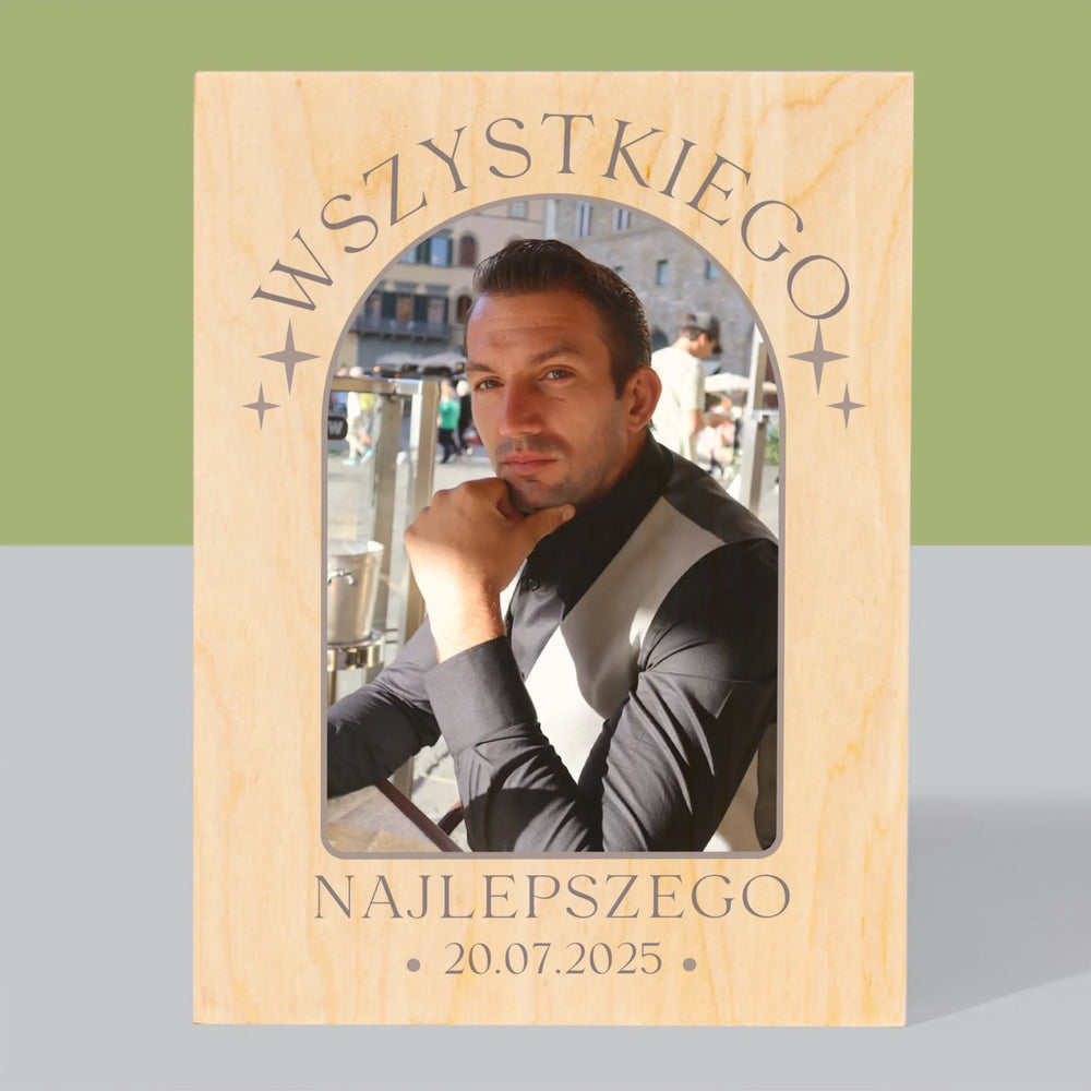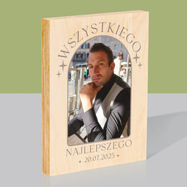 Zdjęcie i Podpis: Stylowe Urodziny - Wydruk na drewnie - Pion