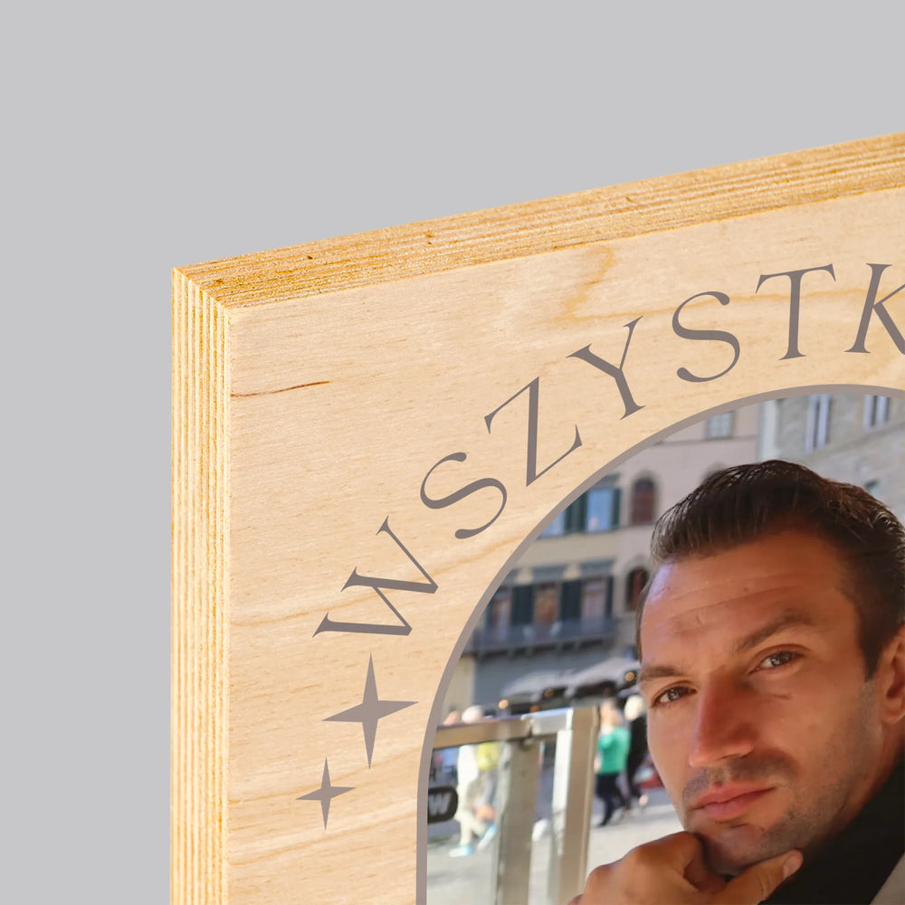Wydruk na drewnie o grubości 1,8 cm z wybranym przez Ciebie personalizowanym wzorem.