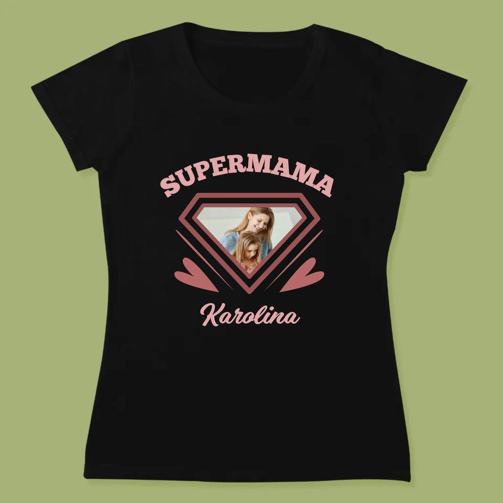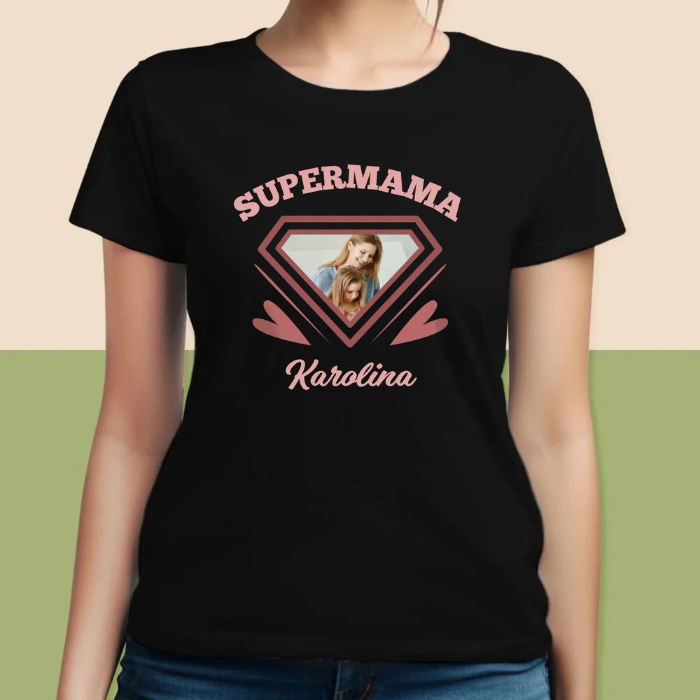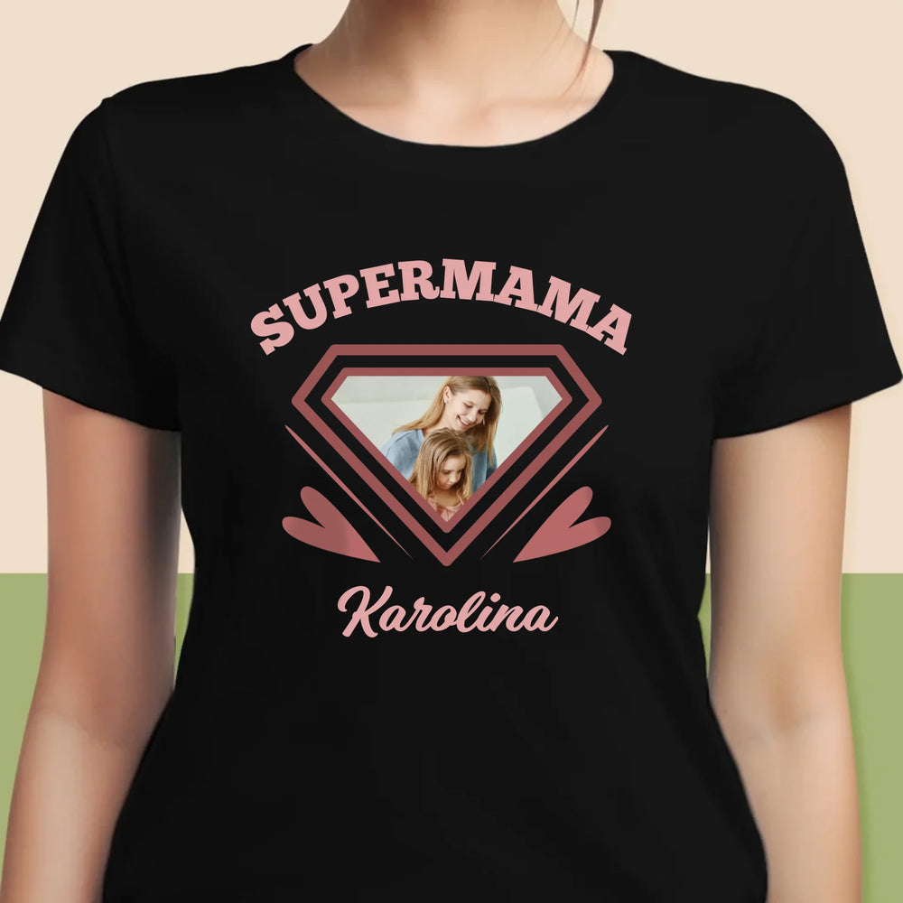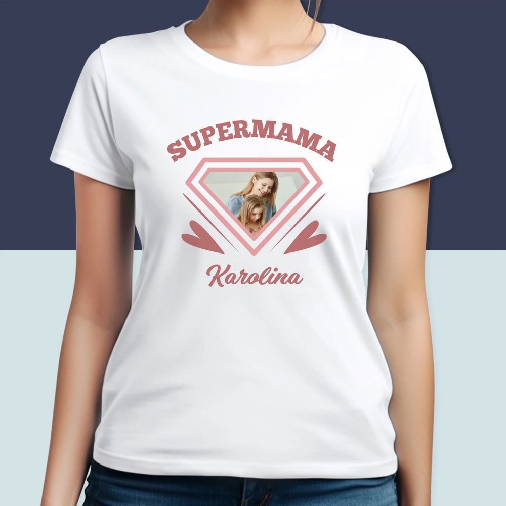 Zdjęcie i Podpis: Supermama - Personalizowana Koszulka Damska