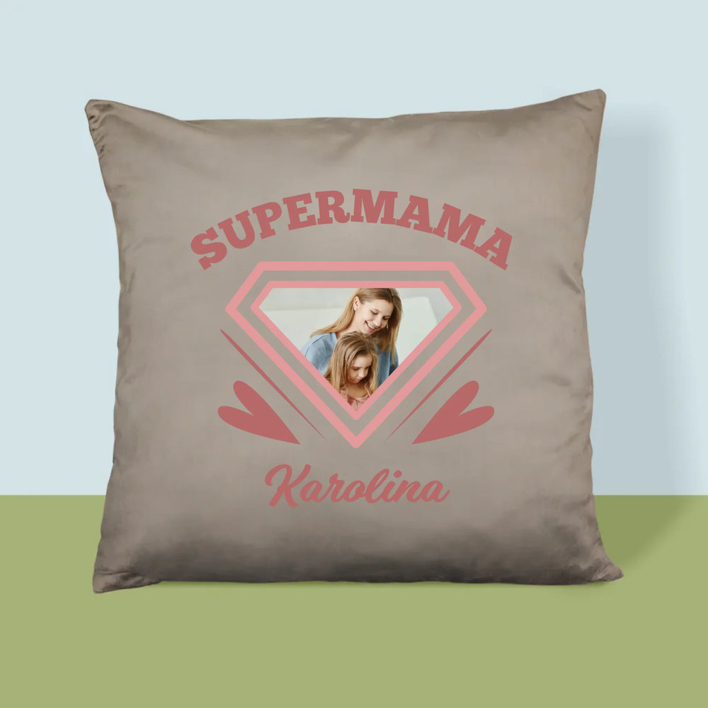 Zdjęcie i Podpis: Supermama - Poduszka z Nadrukiem