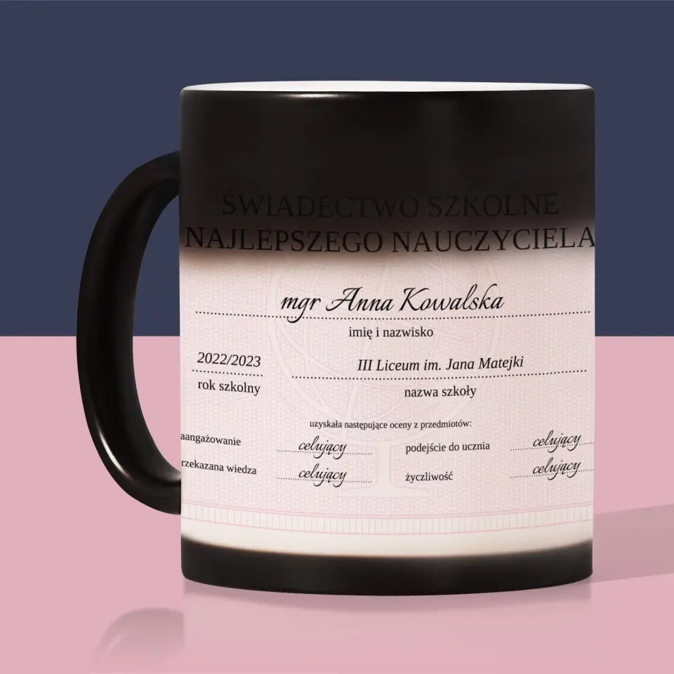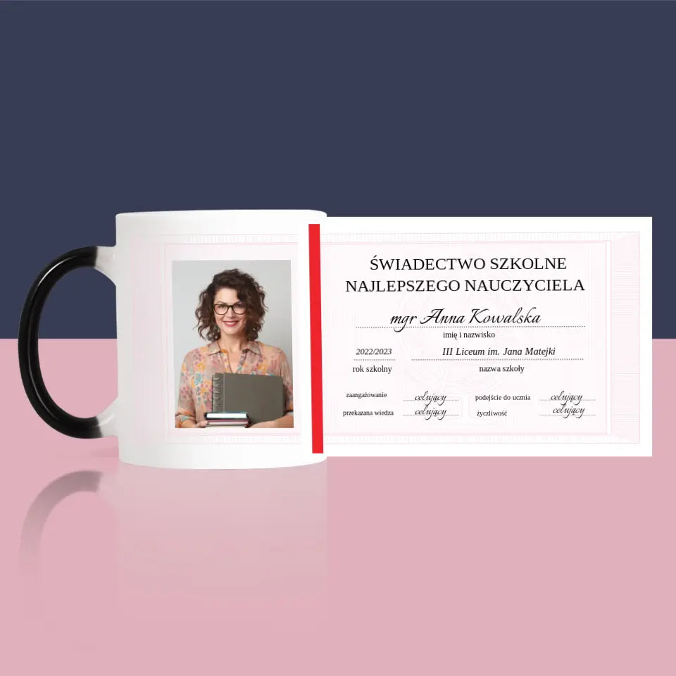 Zdjęcie i Podpis: Świadectwo Najlepszego Nauczyciela - Kubek z nadrukiem