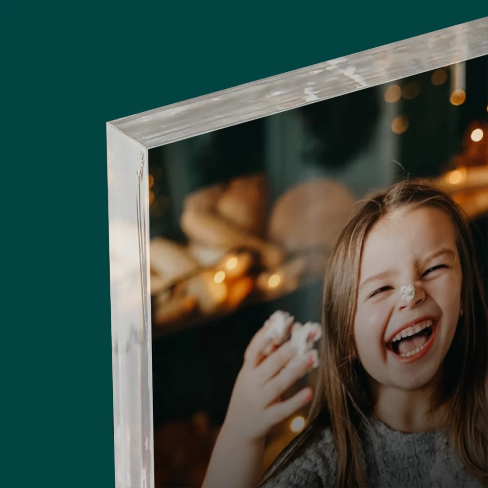 Wydruk na bezbarwnym bloku akrylowym (pleksiglas) o grubości 2 cm z wybranym przez Ciebie personalizowanym wzorem.