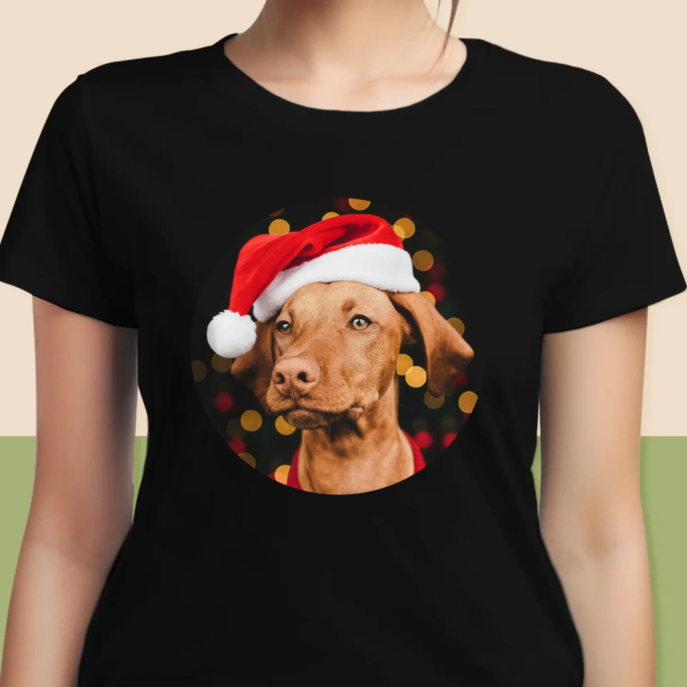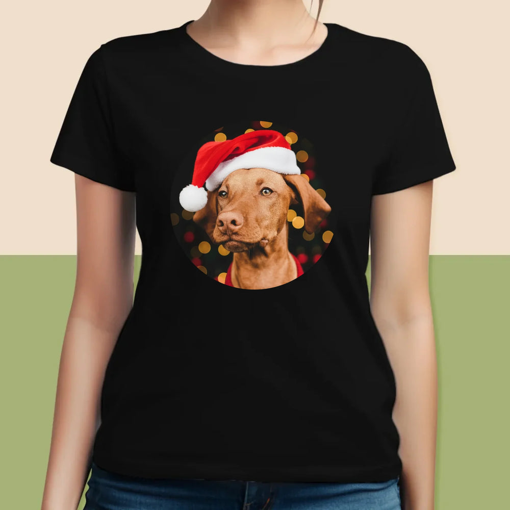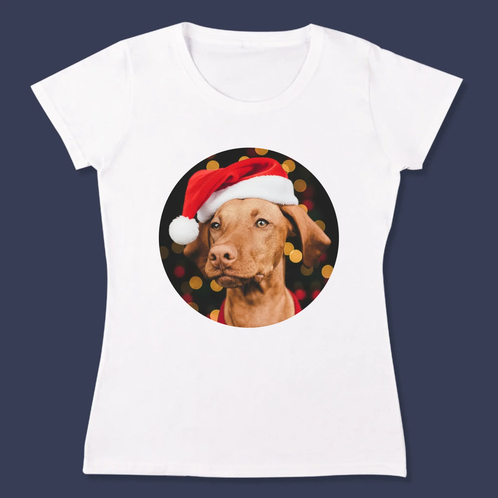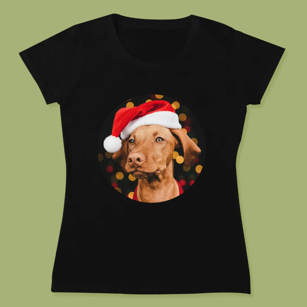 Zdjęcie I Podpis: Świąteczny Piesek - Personalizowana Koszulka Damska