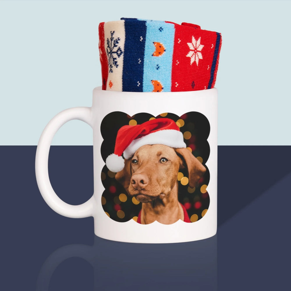 Wysokiej jakości kubek z wybraną przez Ciebie personalizacją ze skarpetkami w środku.