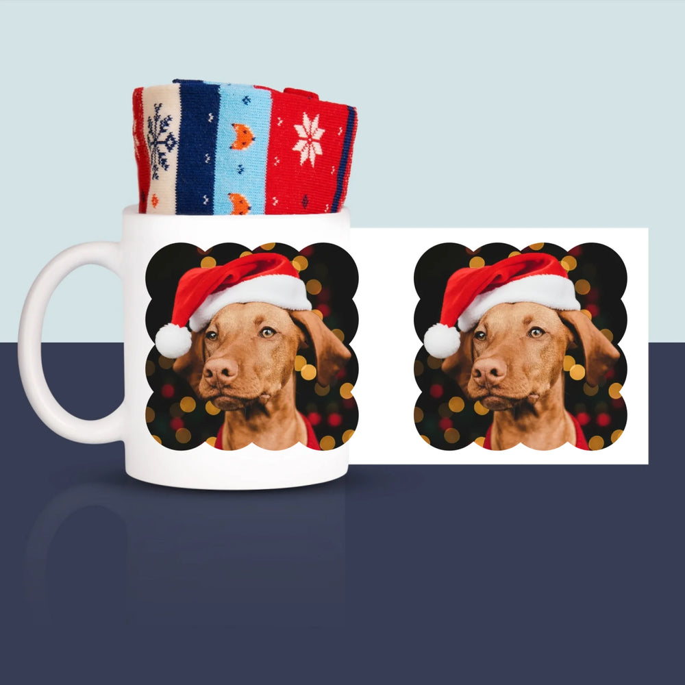 Zdjęcie i Podpis: Świąteczny Piesek - Zimowe skarpetki w kubku