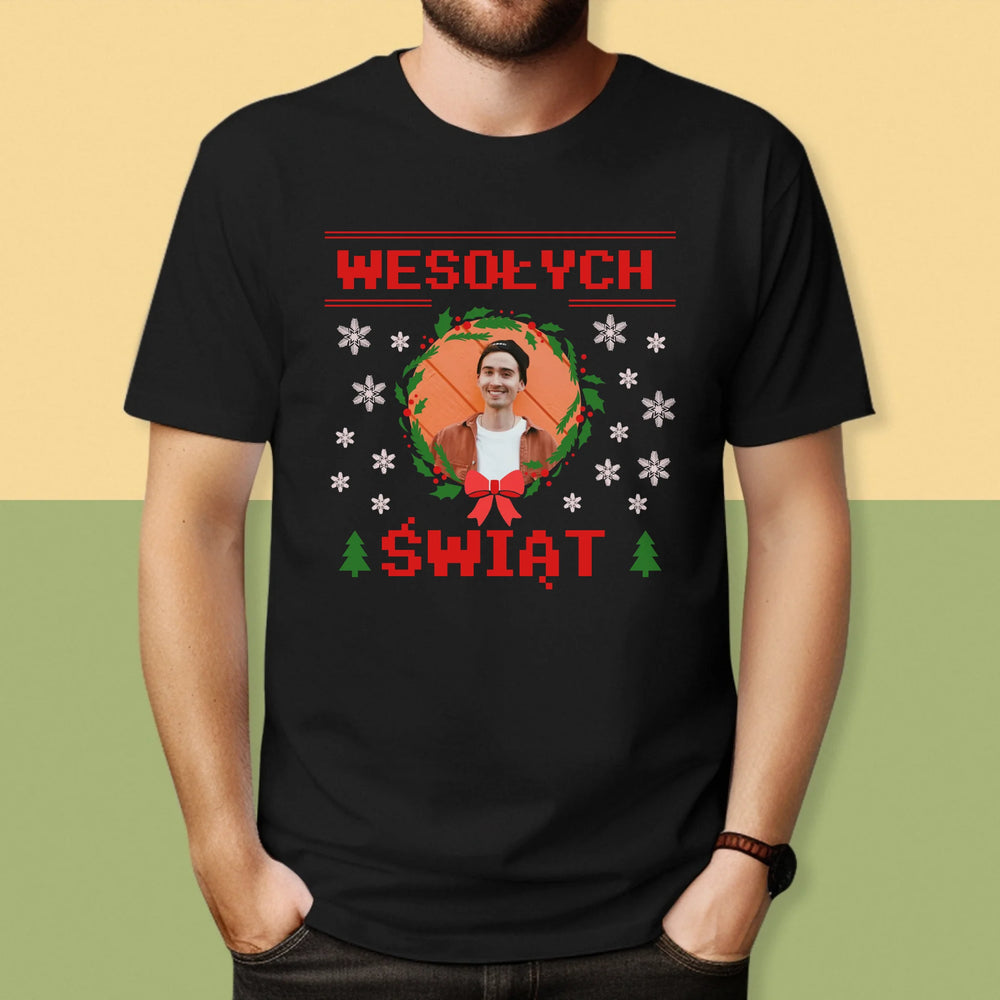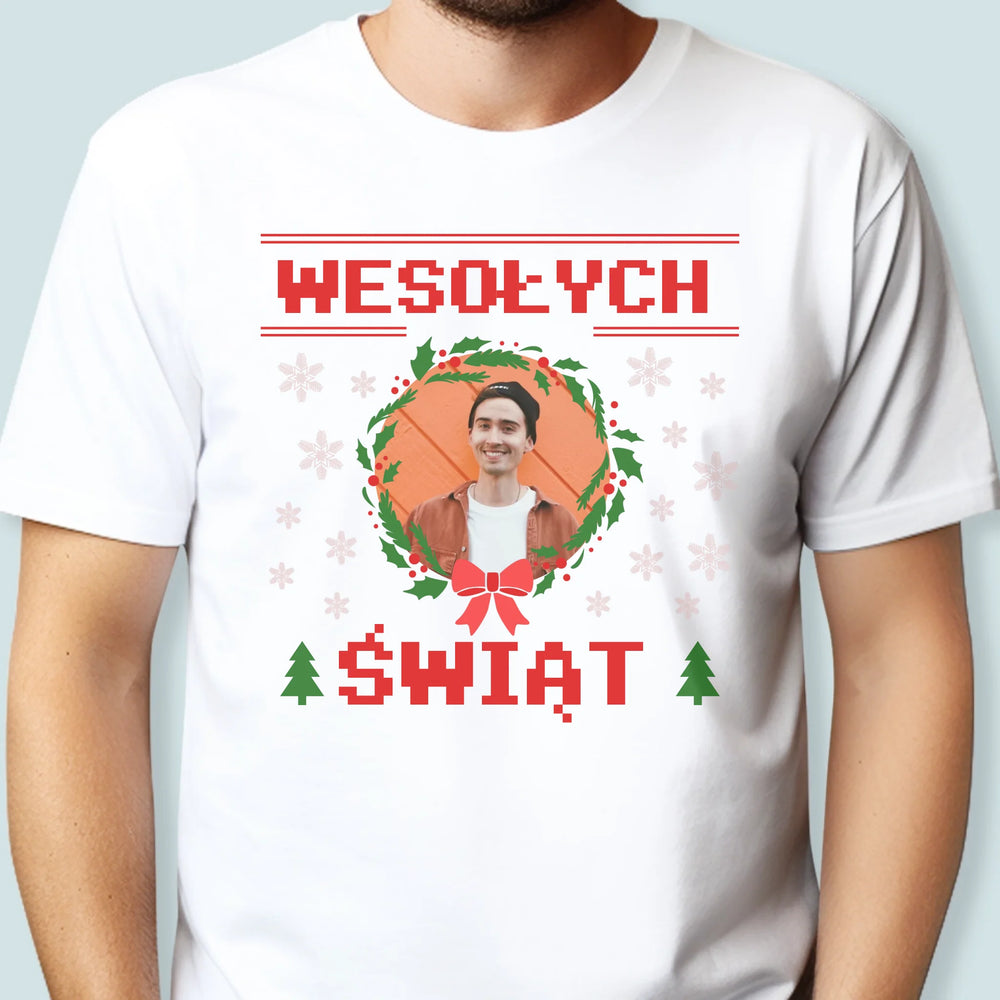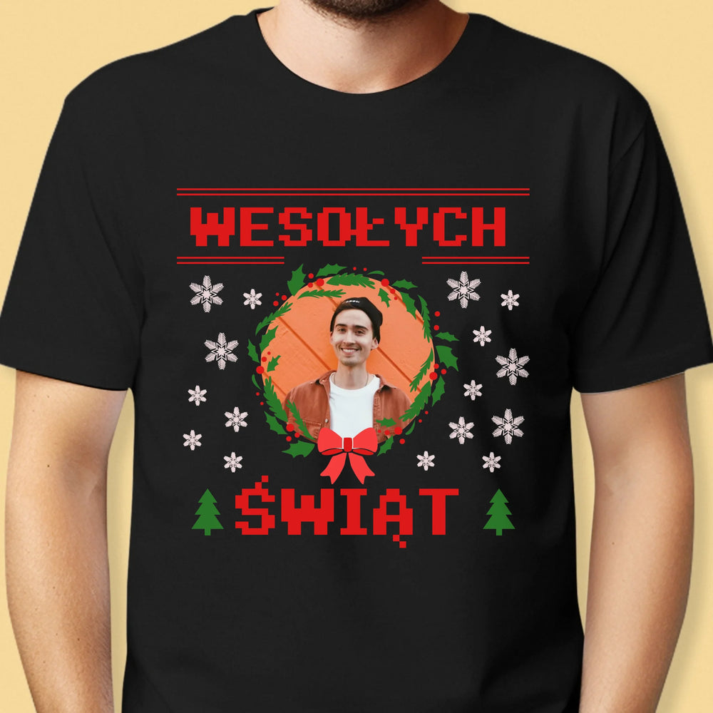Zdjęcie I Podpis: Świąteczny Sweter - Personalizowana Koszulka Męska