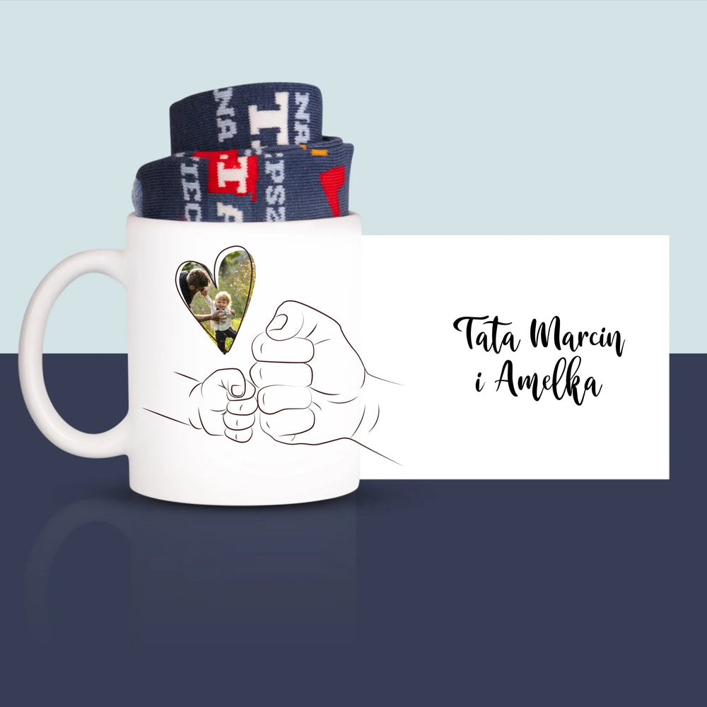 Zdjęcie i Podpis: Tata Dziecko Rączka - Skarpetki w kubku dla taty