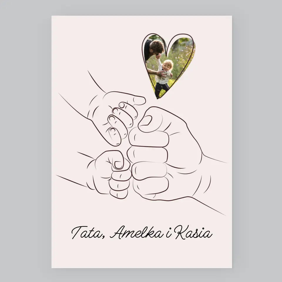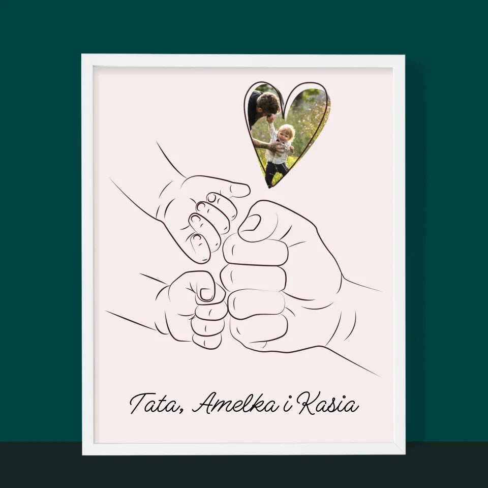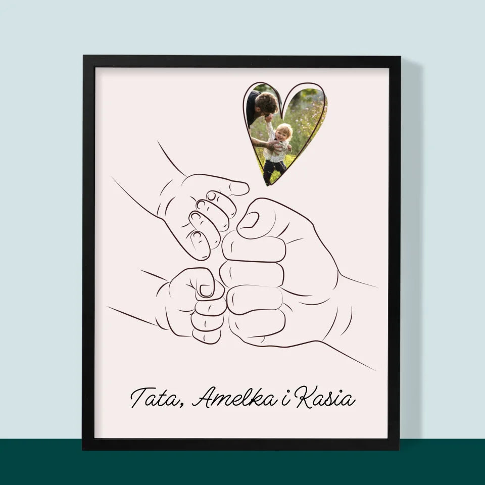 Zdjęcie I Podpis: Tata Dziecko Rączka - Wydruk obramowany - Pion