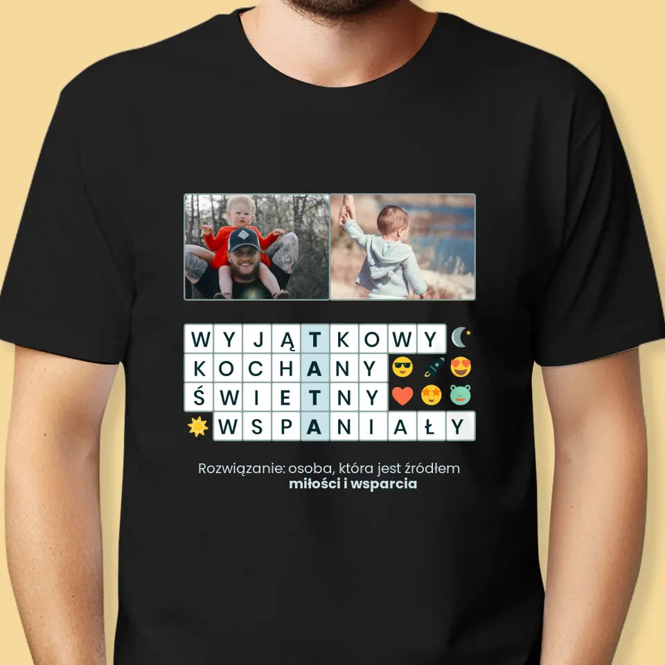 Zdjęcie i Podpis: Tata Krzyżówka - Personalizowana Koszulka Męska