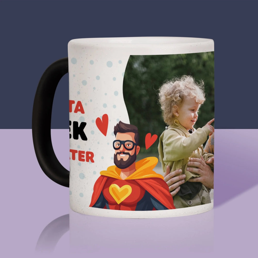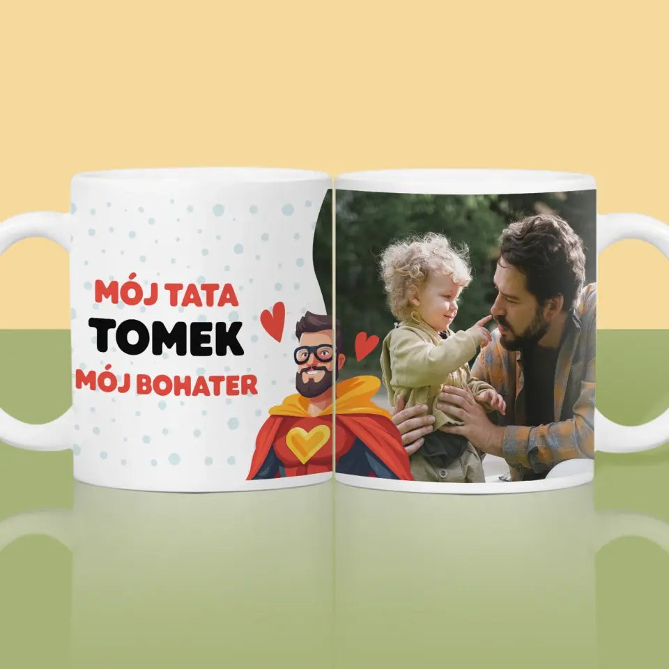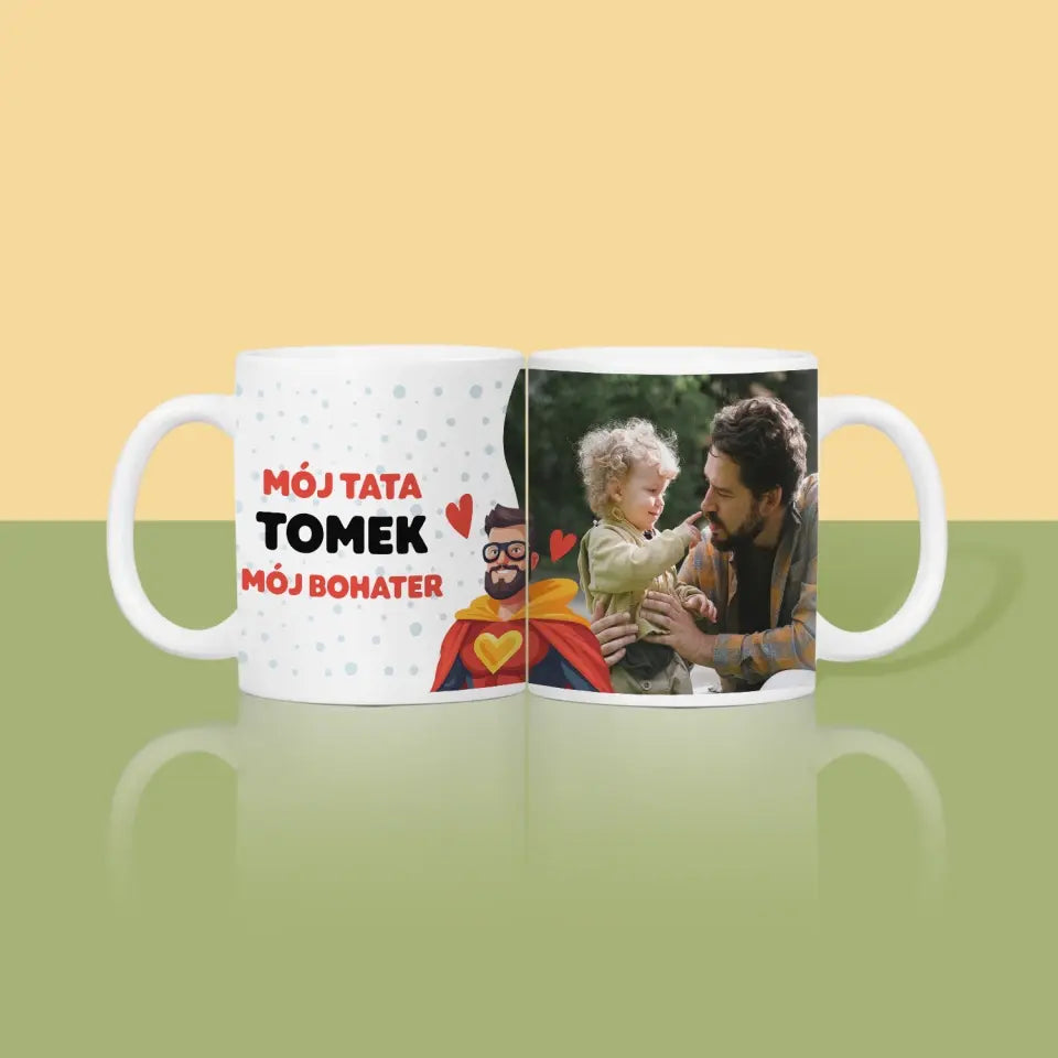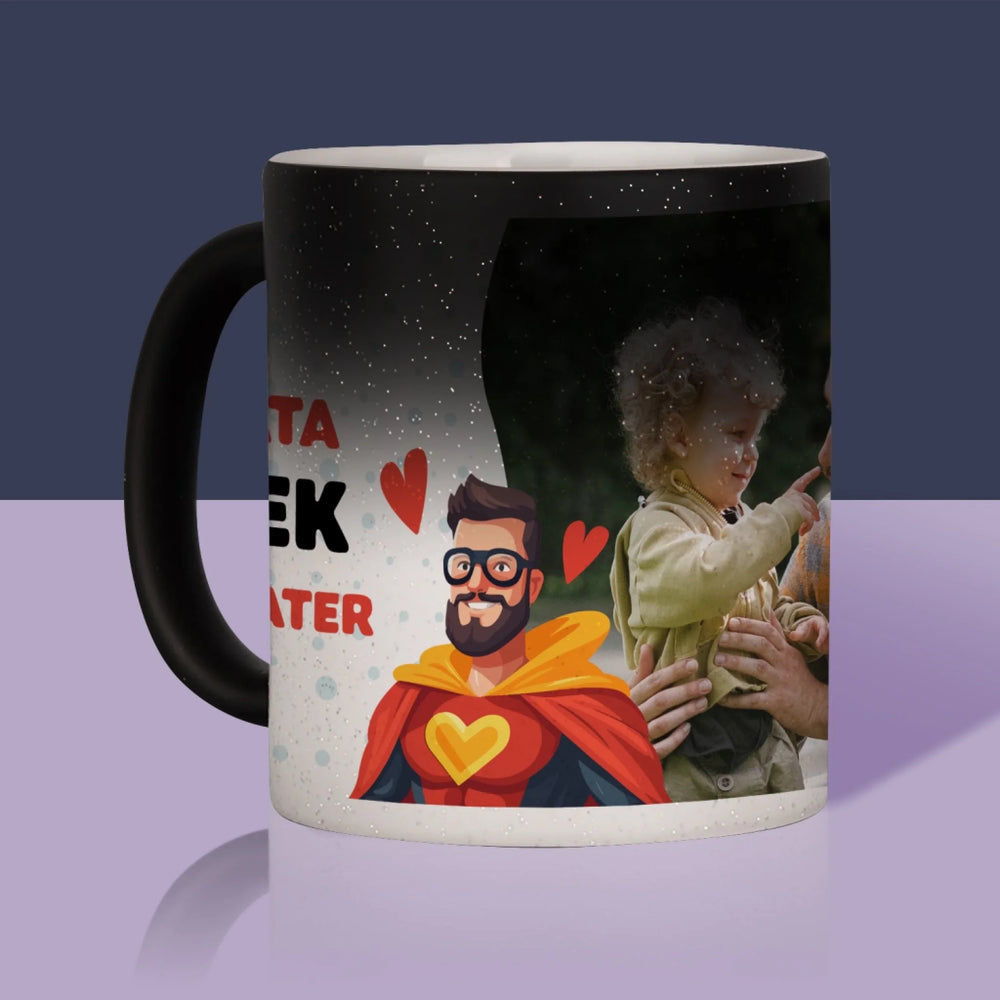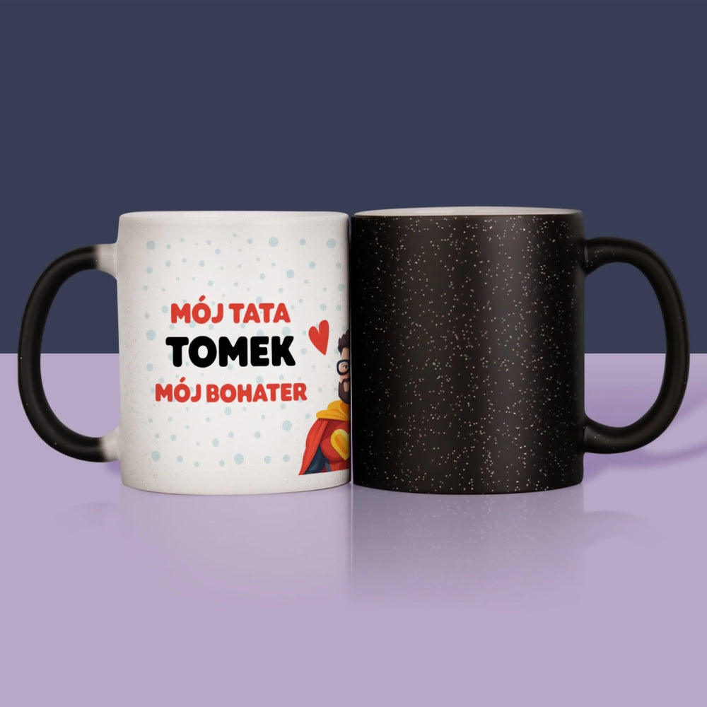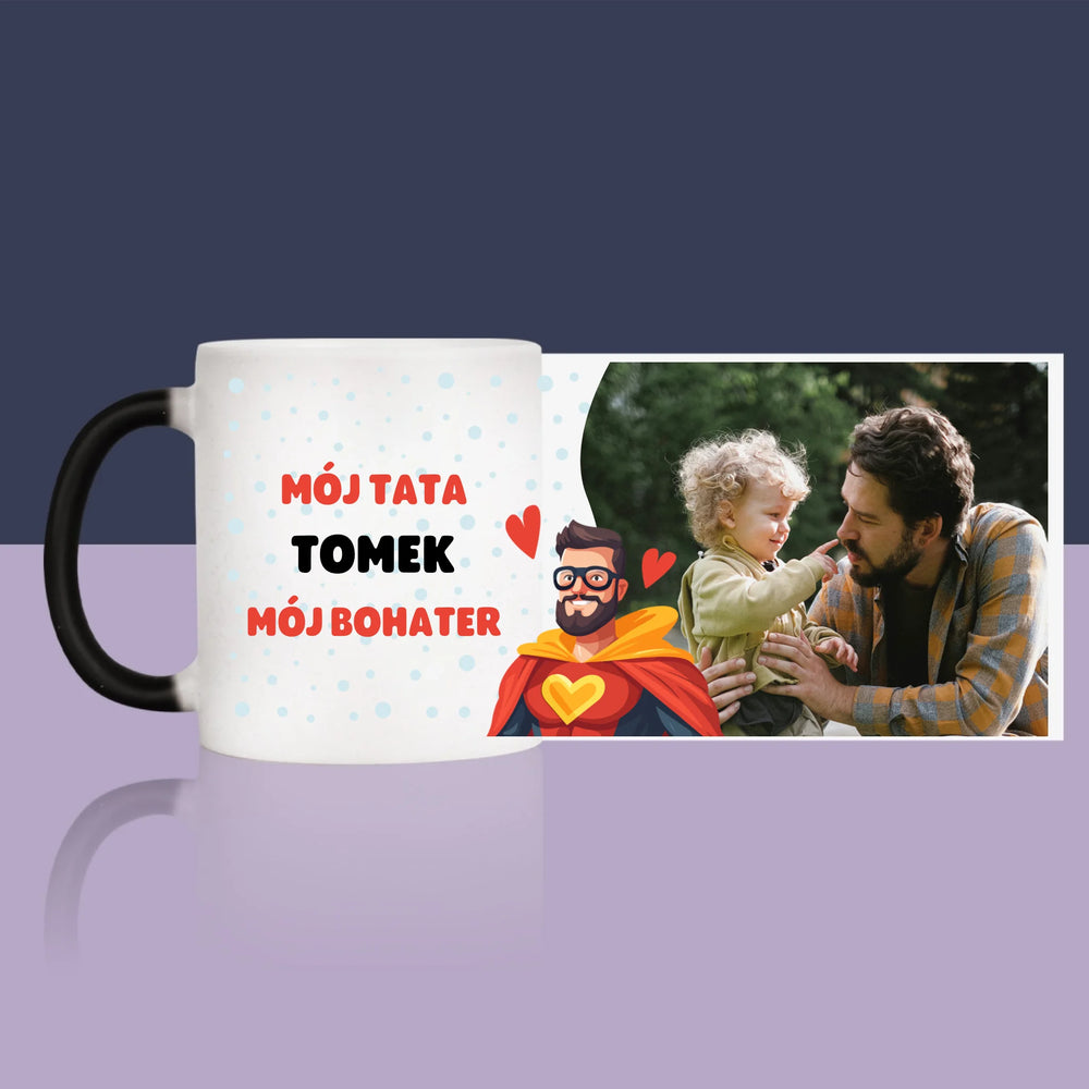 Zdjęcie i Podpis: Tata Mój Bohater - Magiczny kubek z brokatem