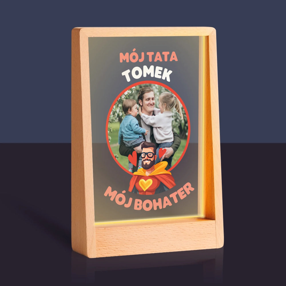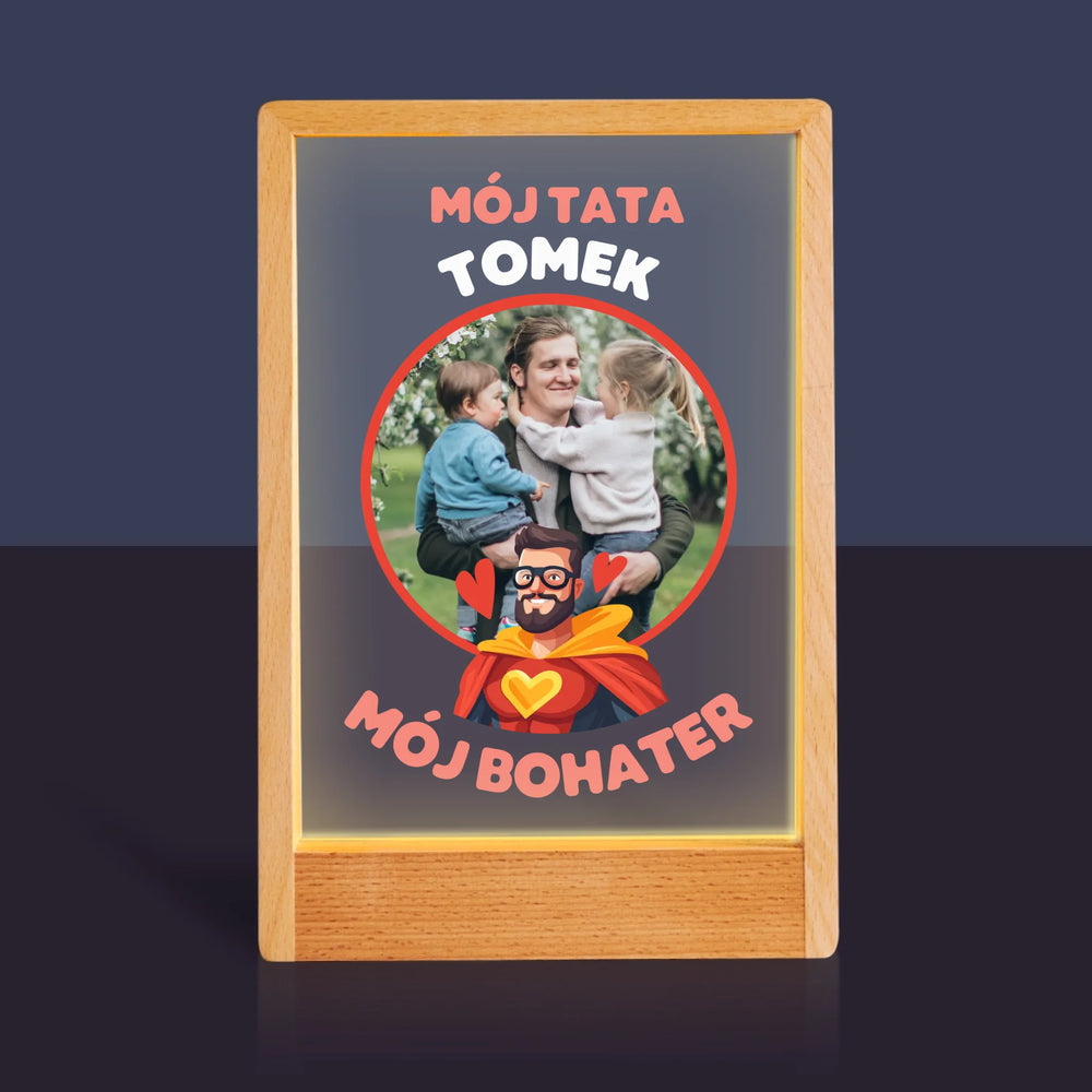 Zdjęcie i Podpis: Tata Mój Bohater - Wydruk na szkle akrylowym