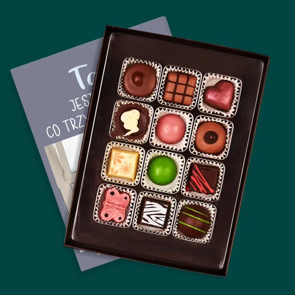 Pyszne praliny z belgijskiej czekolady w eleganckim pudełku z wybraną przez Ciebie personalizacją.