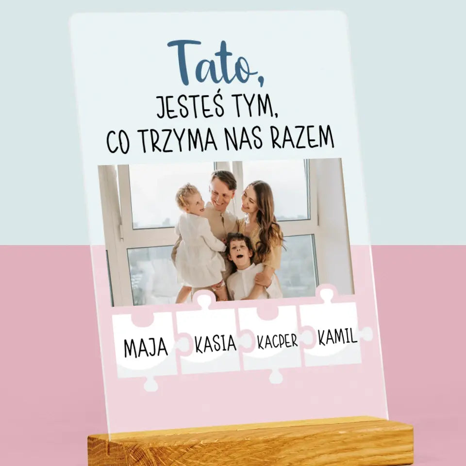 Zdjęcie i Podpis: Tato, Jesteś Tym Co Trzyma Nas Razem - Wydruk na szkle akrylowym