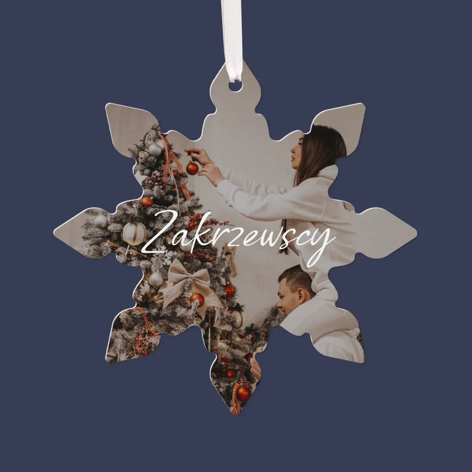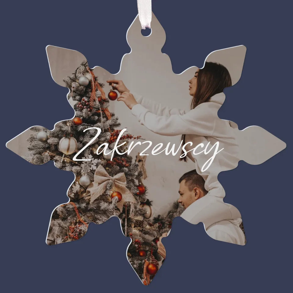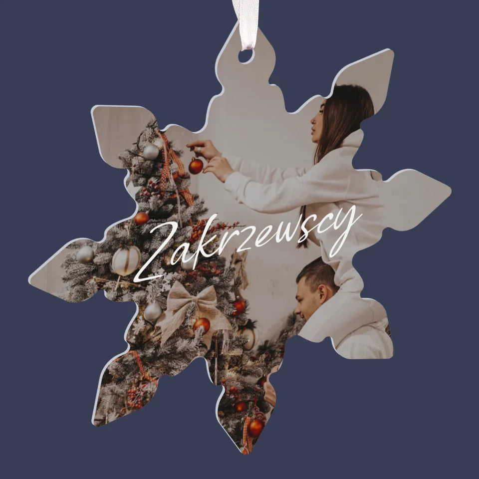 Zdjęcie i Podpis: Twoje Zdjęcie i Podpis - Bombka akrylowa śnieżynka