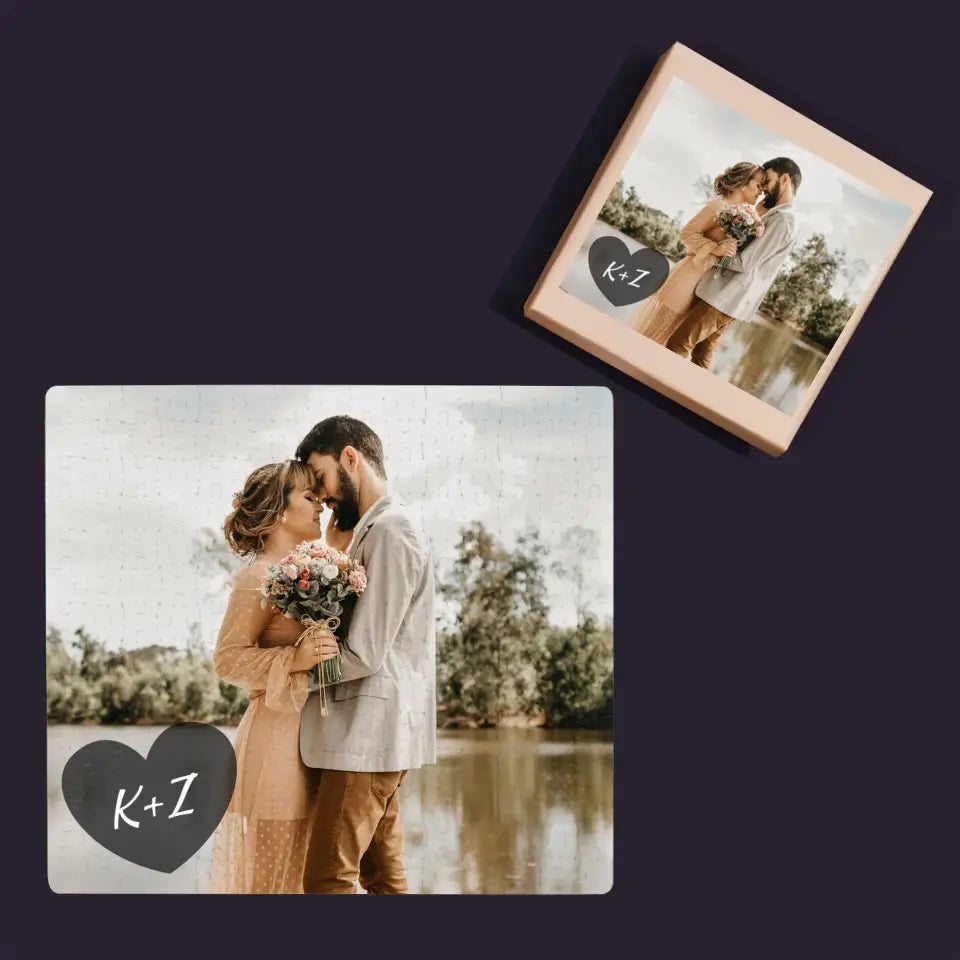Zdjęcie I Podpis: Twoje Zdjęcie Inicjały - Puzzle Personalizowane
