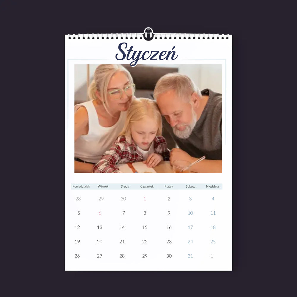 Fotokalendarz wiszący z wybranymi przez Ciebie zdjęciami.