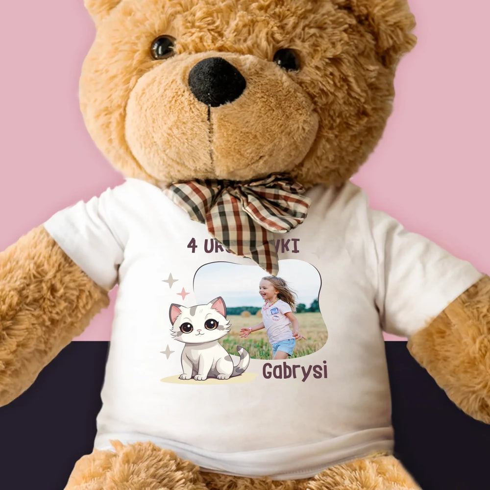 Duży pluszowy miś z wybranym przez Ciebie personalizowanym wzorem.