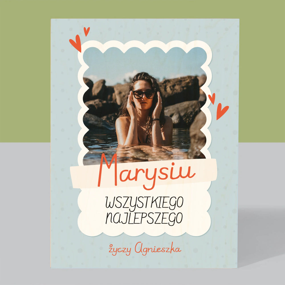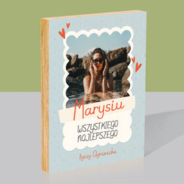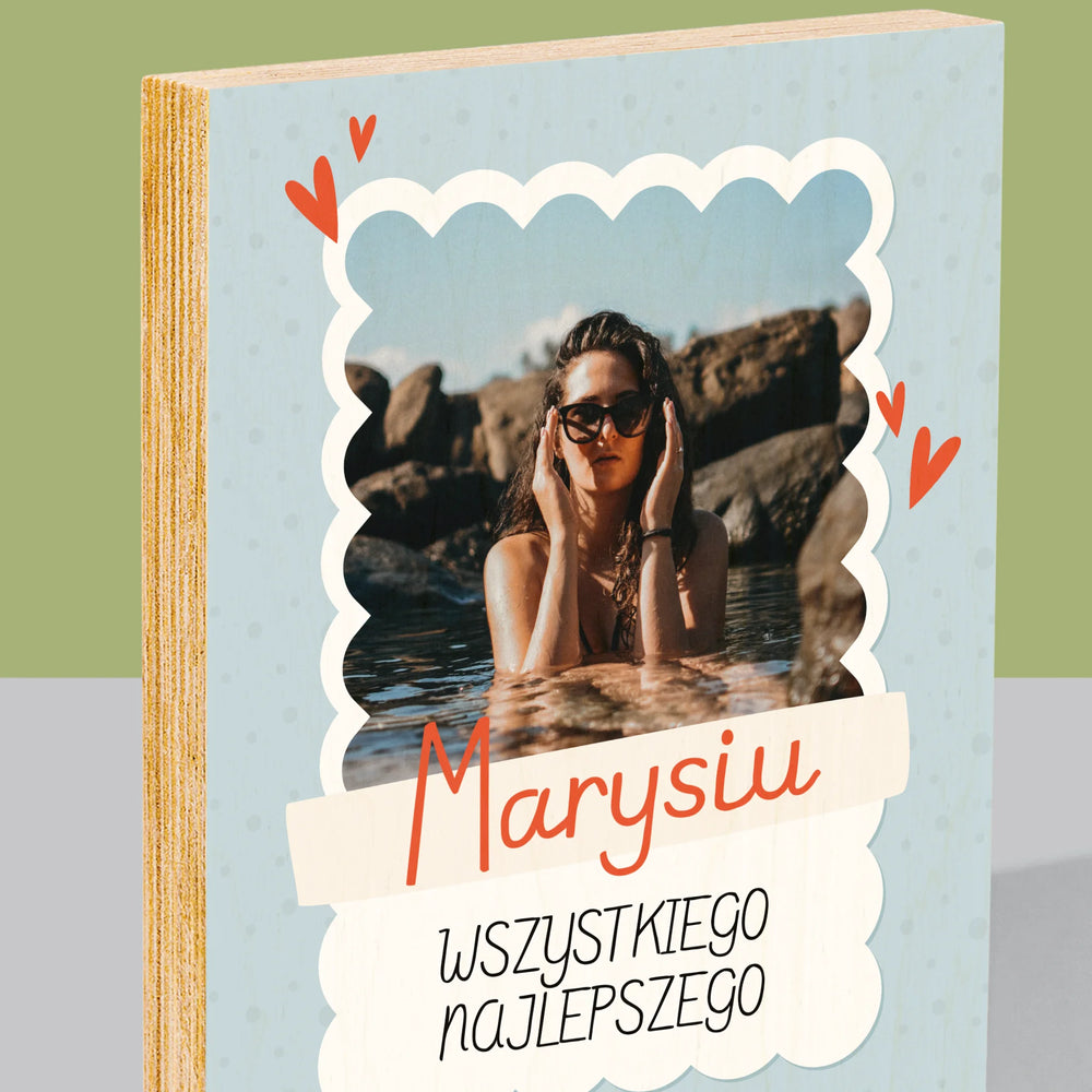 Zdjęcie i Podpis: Urodzinowa Ramka - Wydruk na drewnie - Pion