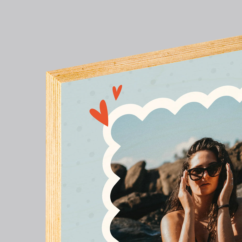 Wydruk na drewnie o grubości 1,8 cm z wybranym przez Ciebie personalizowanym wzorem.