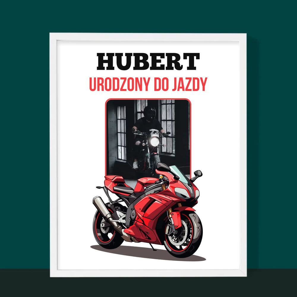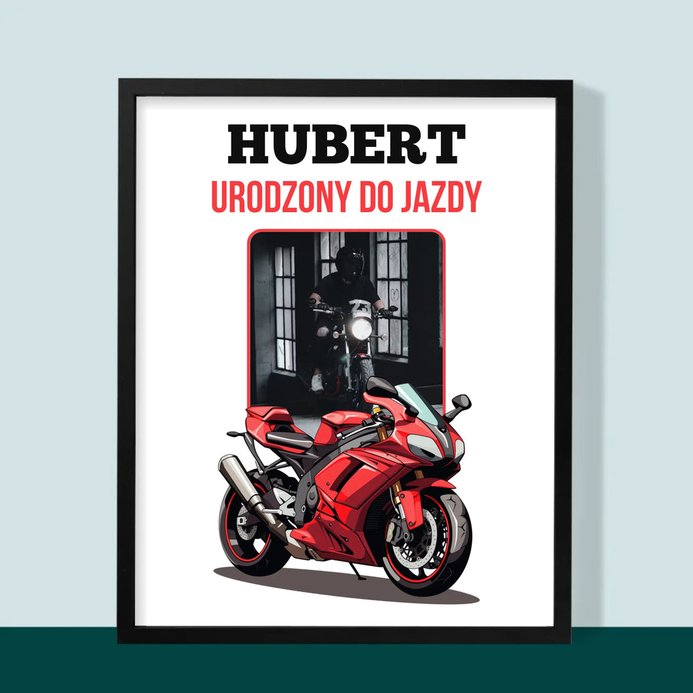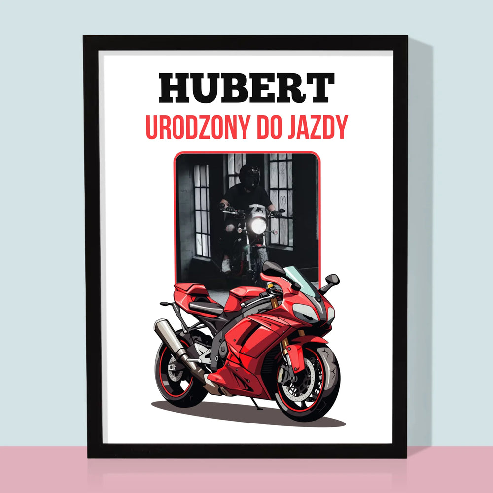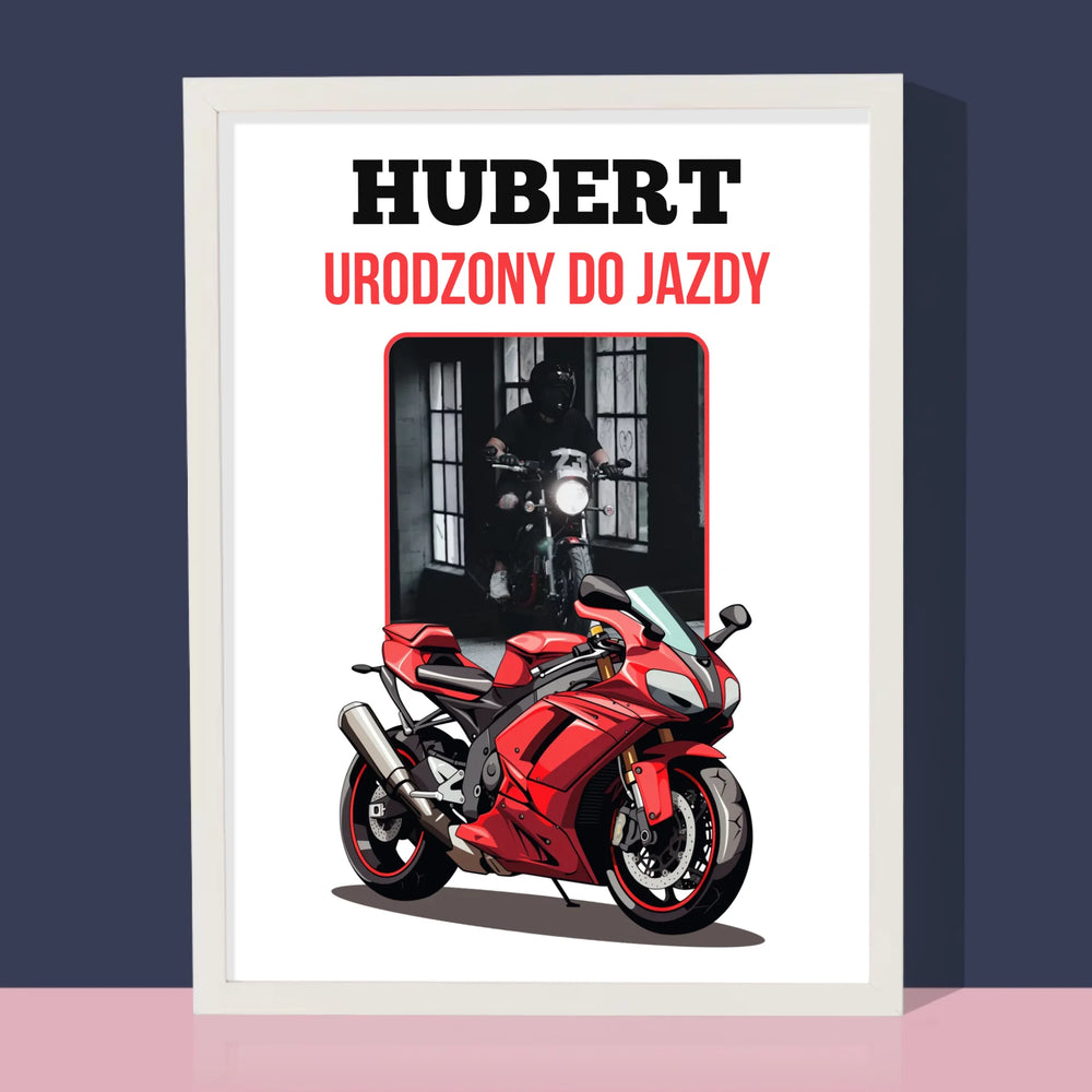 Zdjęcie I Podpis: Urodzony Do Jazdy - Wydruk obramowany - Pion