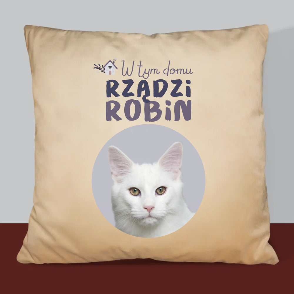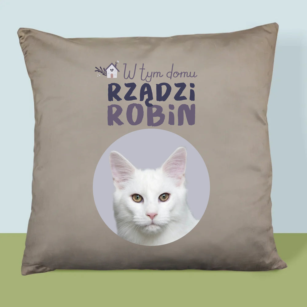Zdjęcie i Podpis: w Tym Domu Rządzi Zwierzak - Poduszka z Nadrukiem