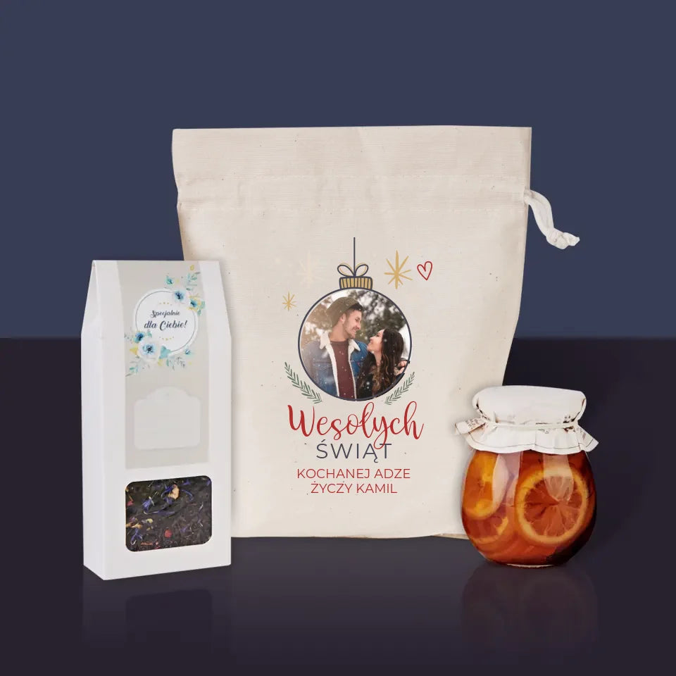 Zdjęcie I Podpis: Wesołych Świąt Bombka - Zestaw z herbatą