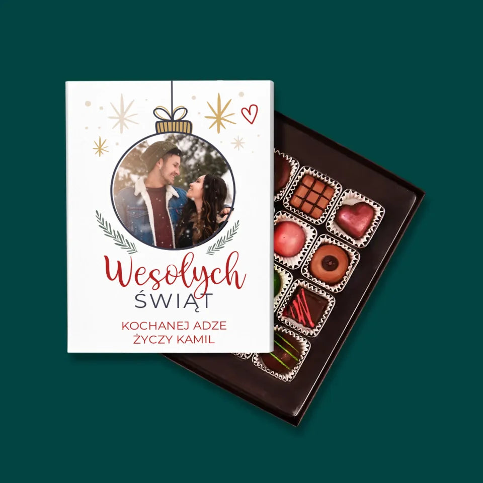 Zdjęcie I Podpis: Wesołych Świąt Bombka - Praliny