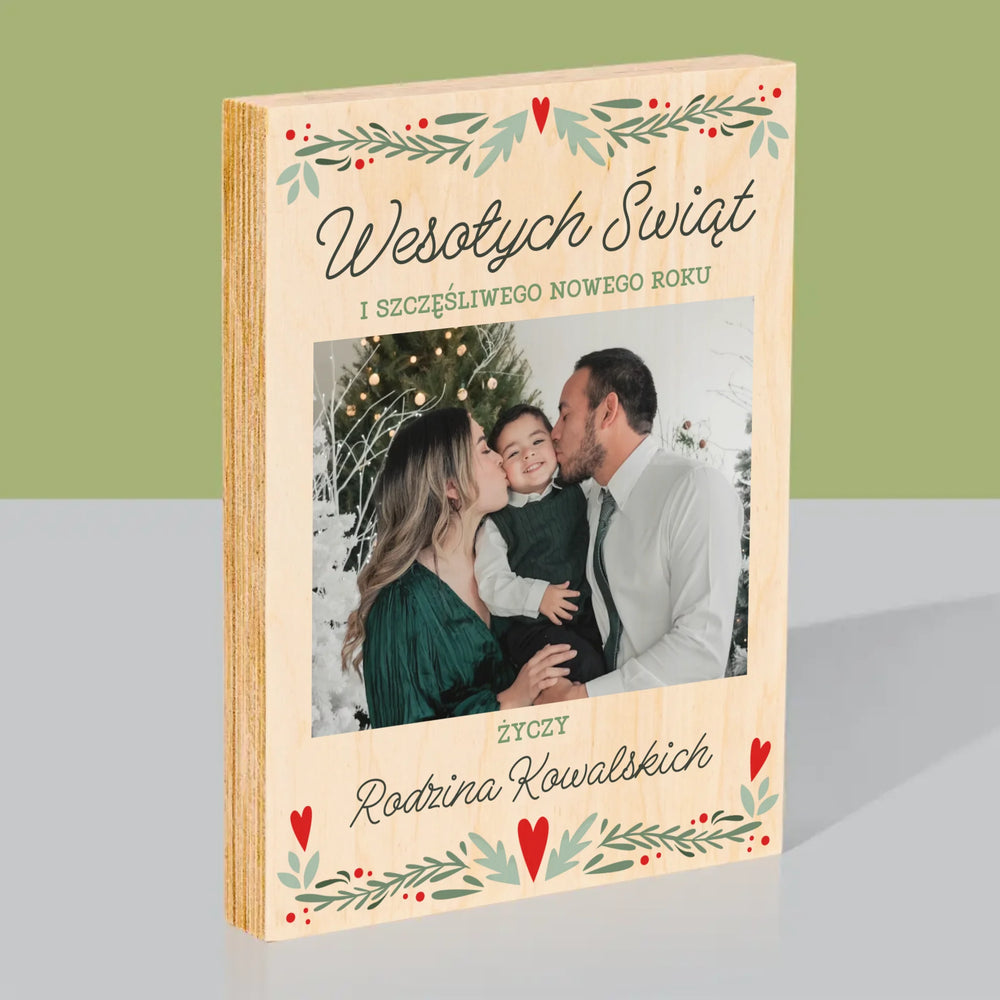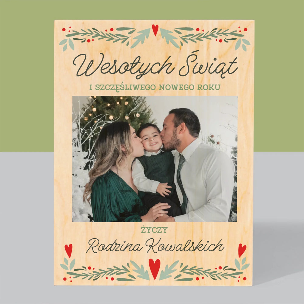 Zdjęcie I Podpis: Wesołych Świąt Elegant - Wydruk na drewnie - Pion