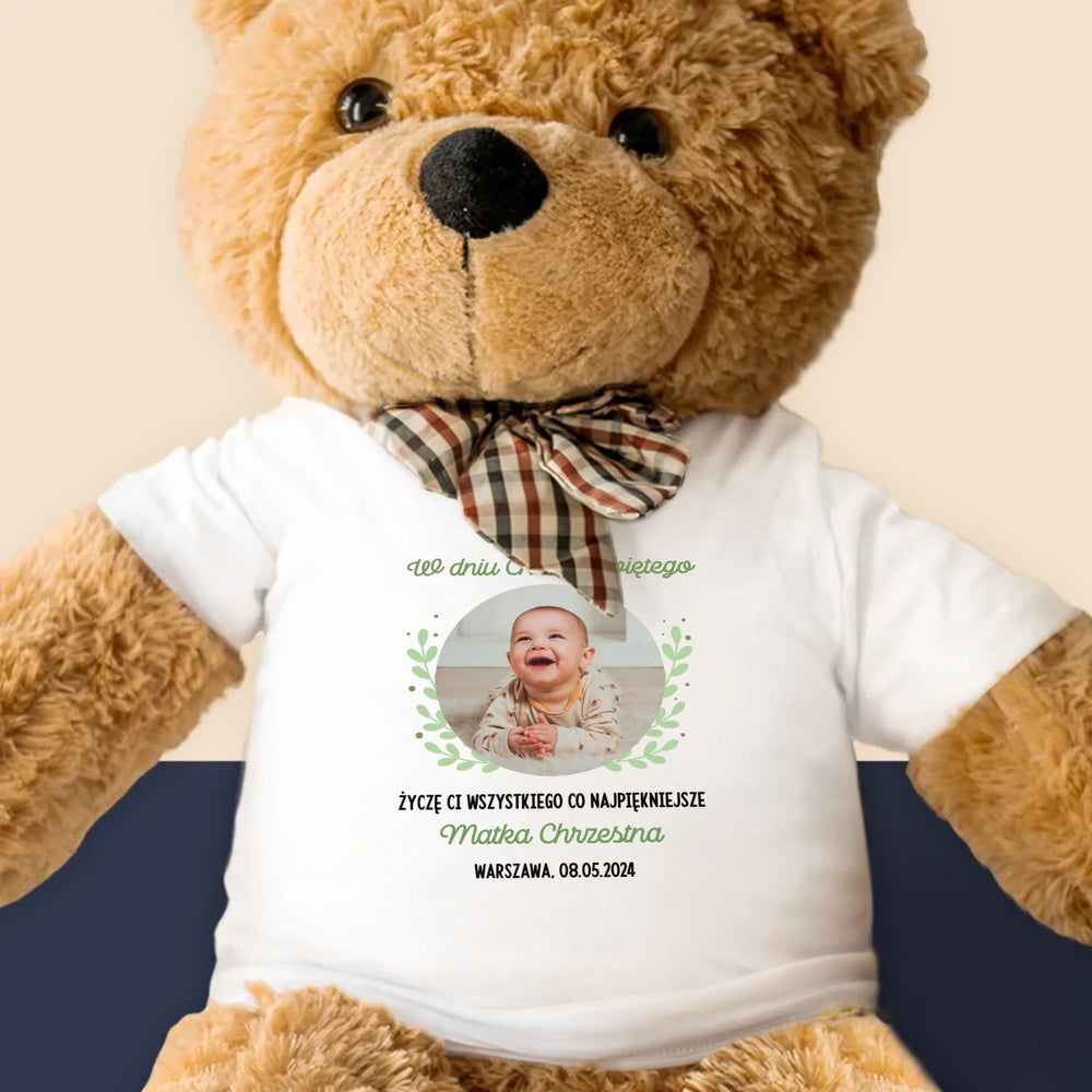 Zdjęcie i Podpis: Z Okazji Chrztu Świętego - Pluszowy miś 90 cm