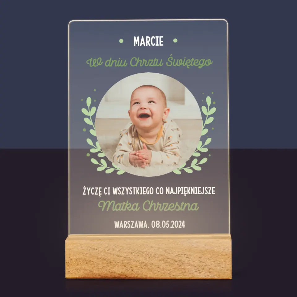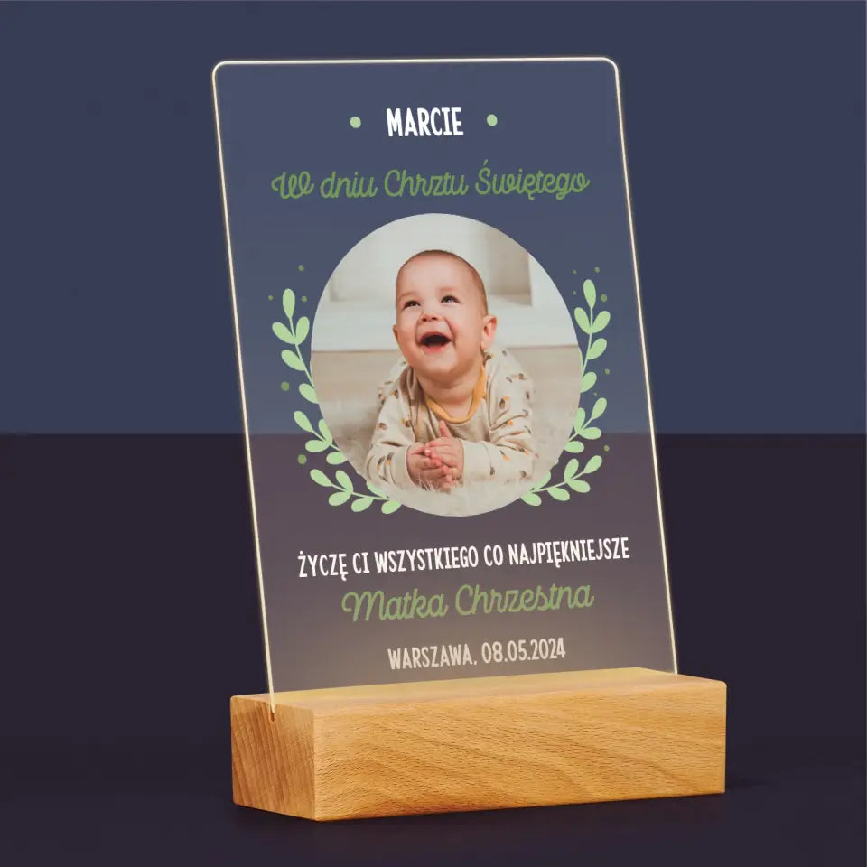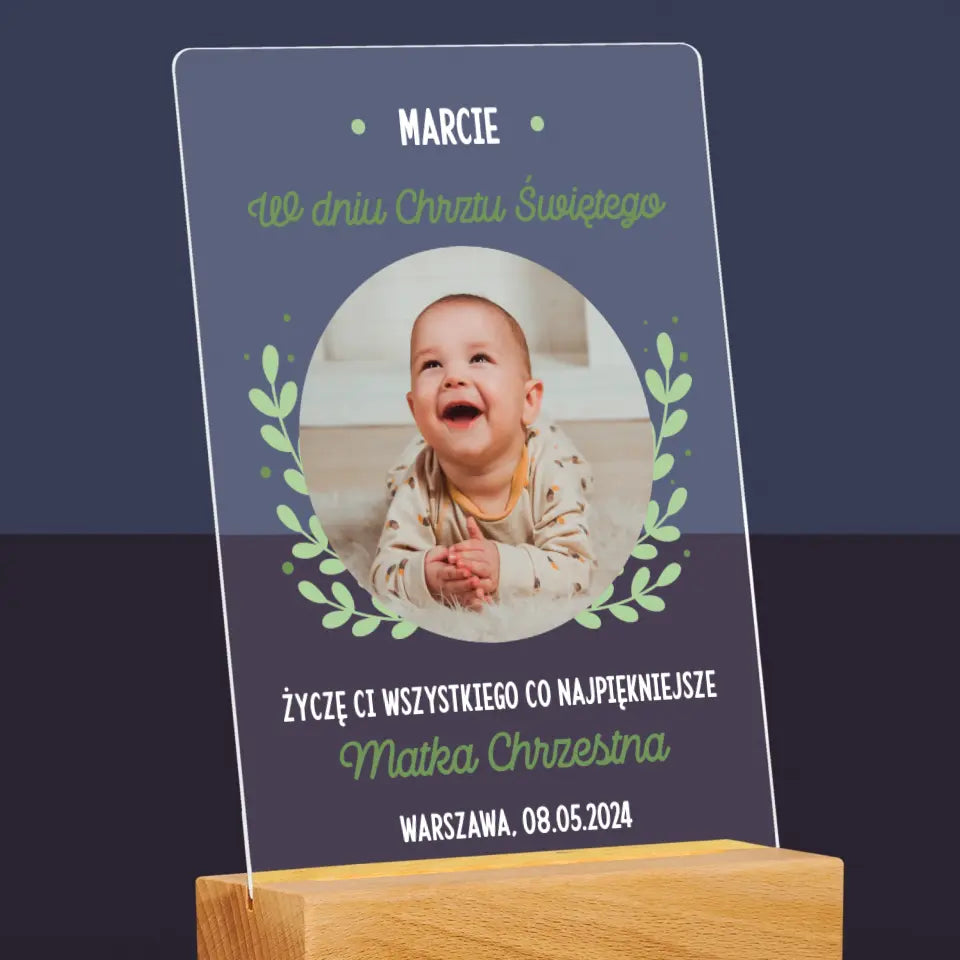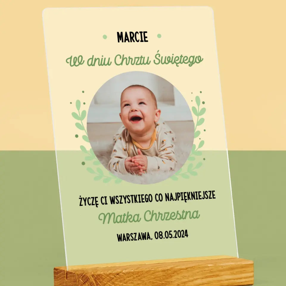 Zdjęcie i Podpis: z Okazji Chrztu Świętego - Wydruk na szkle akrylowym