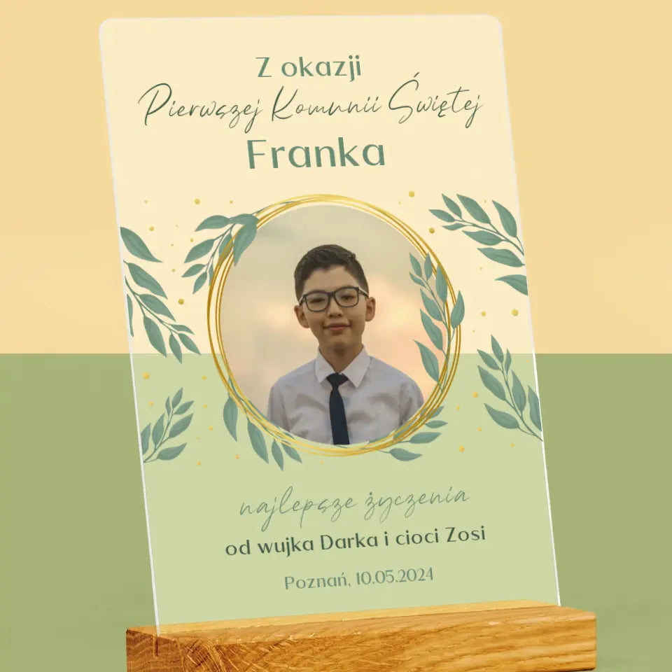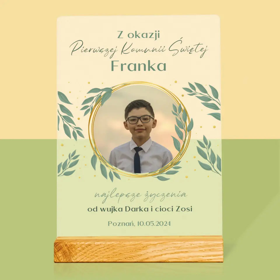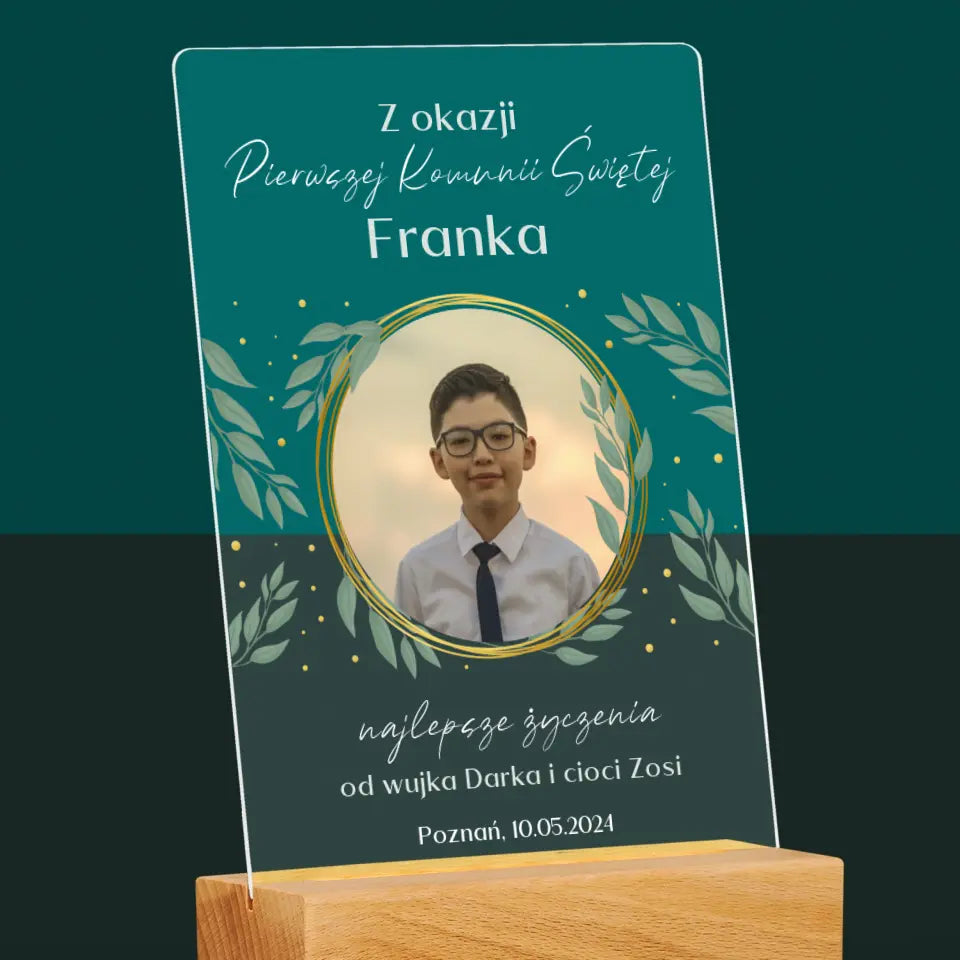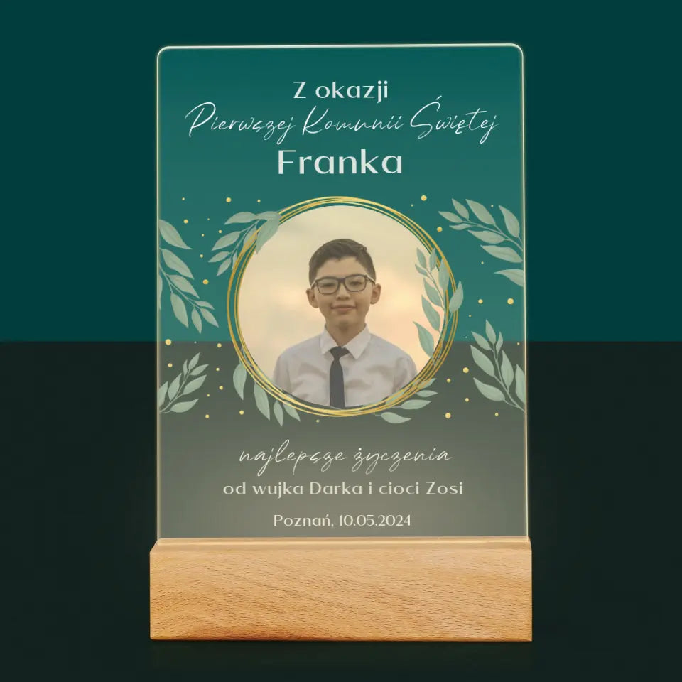 Zdjęcie i Podpis: Z Okazji Pierwszej Komunii Świętej - Wydruk na szkle akrylowym LED